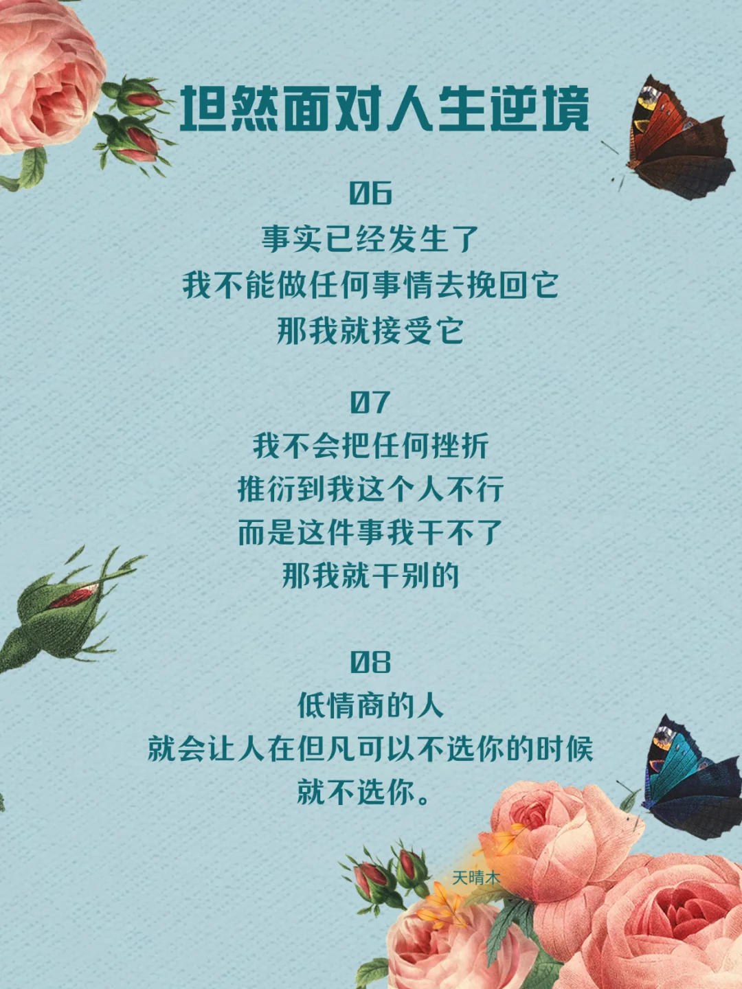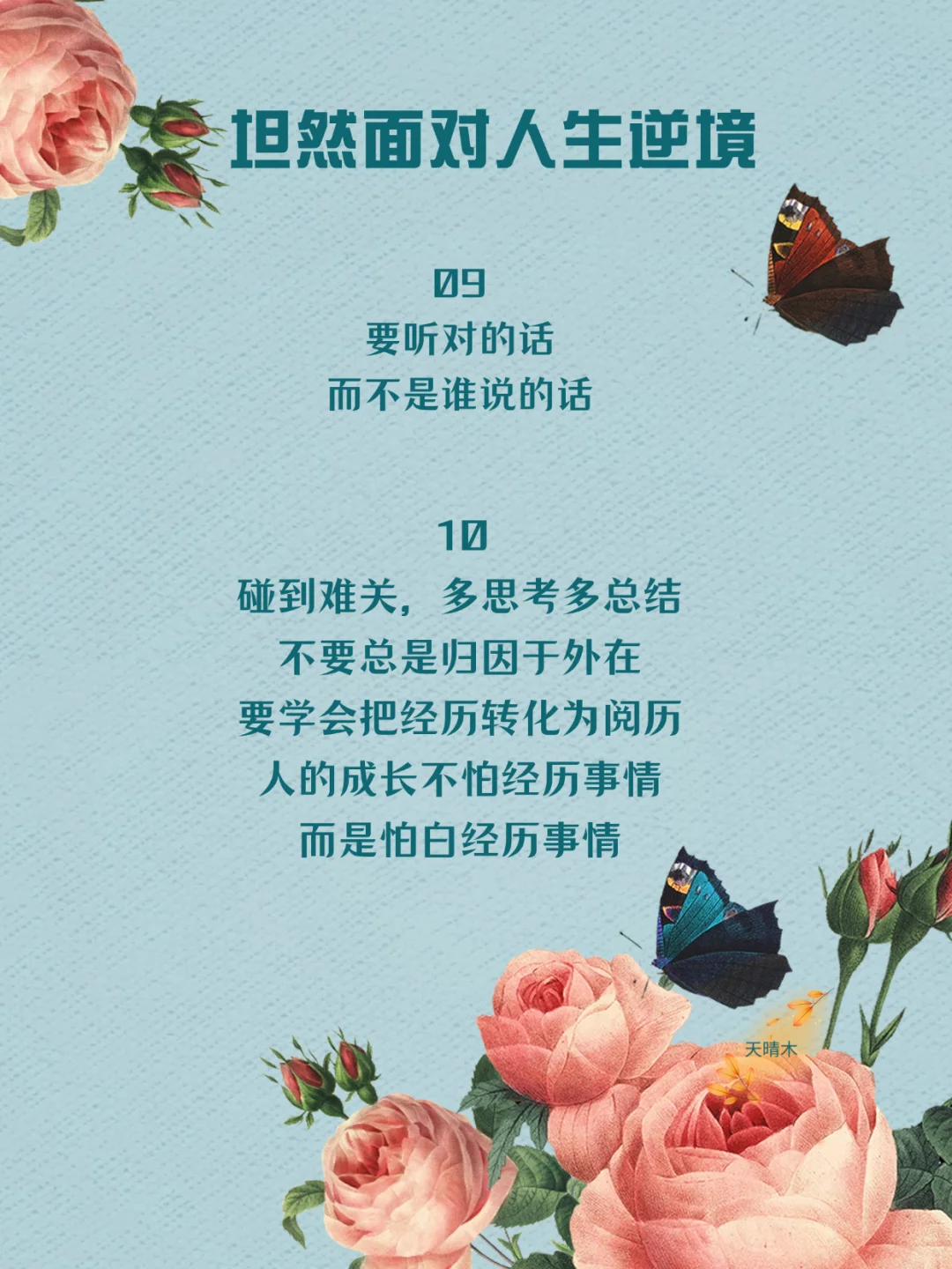 🌿碰到难关,应当多思考多总结,不要总是归因于外在,要学会把经历转化为阅历,人的成长不怕经历事情,而是怕白白经历事情。