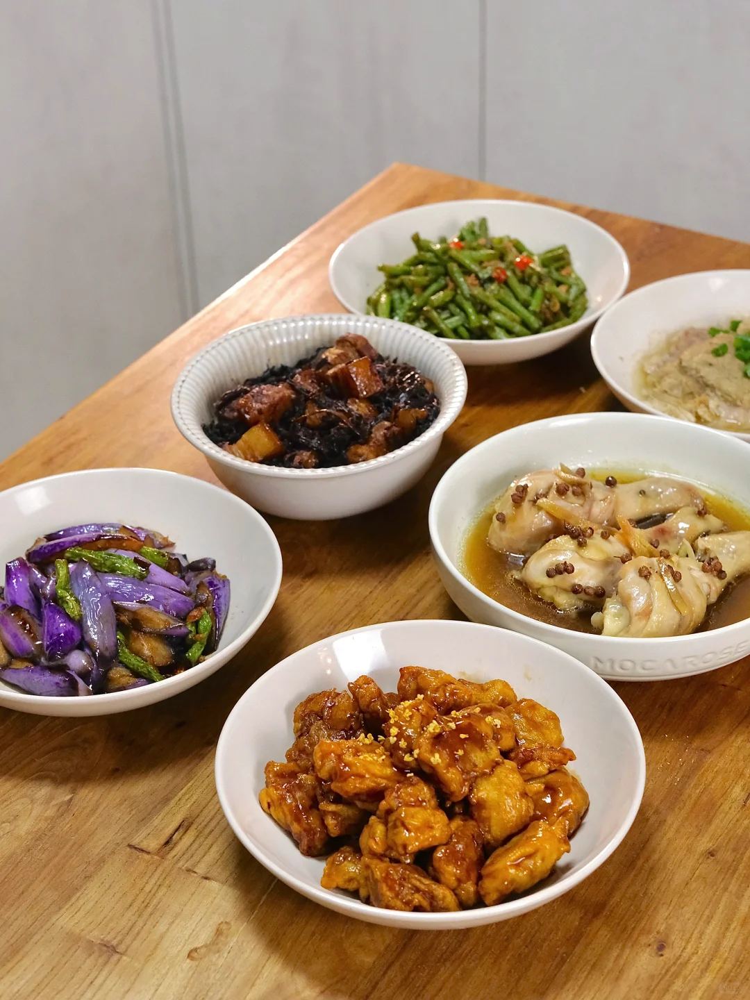 软烂下饭、回味无穷的梅干菜肉,酸甜可口的糖醋里脊,细腻口感独特霉香的霉千张蒸肉饼,鲜香嫩滑的花椒蒸鸡腿,以及老爸赞不绝口的酱爆茄子(他说比饭店的还好吃[偷笑R]),可不就是美美的一顿大餐!