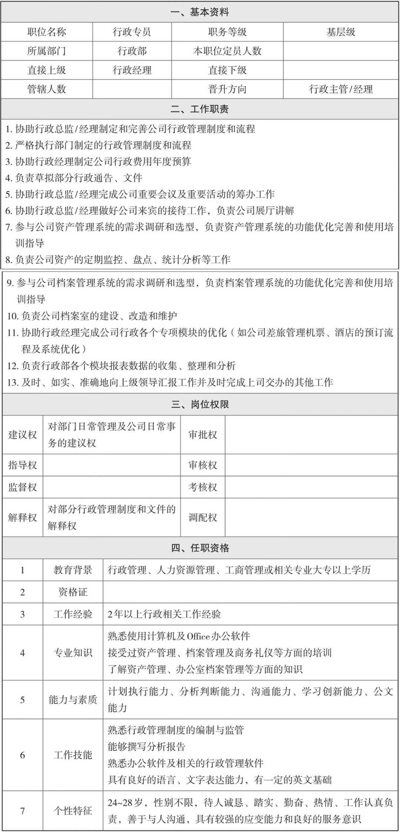 行政专员的岗位说明书