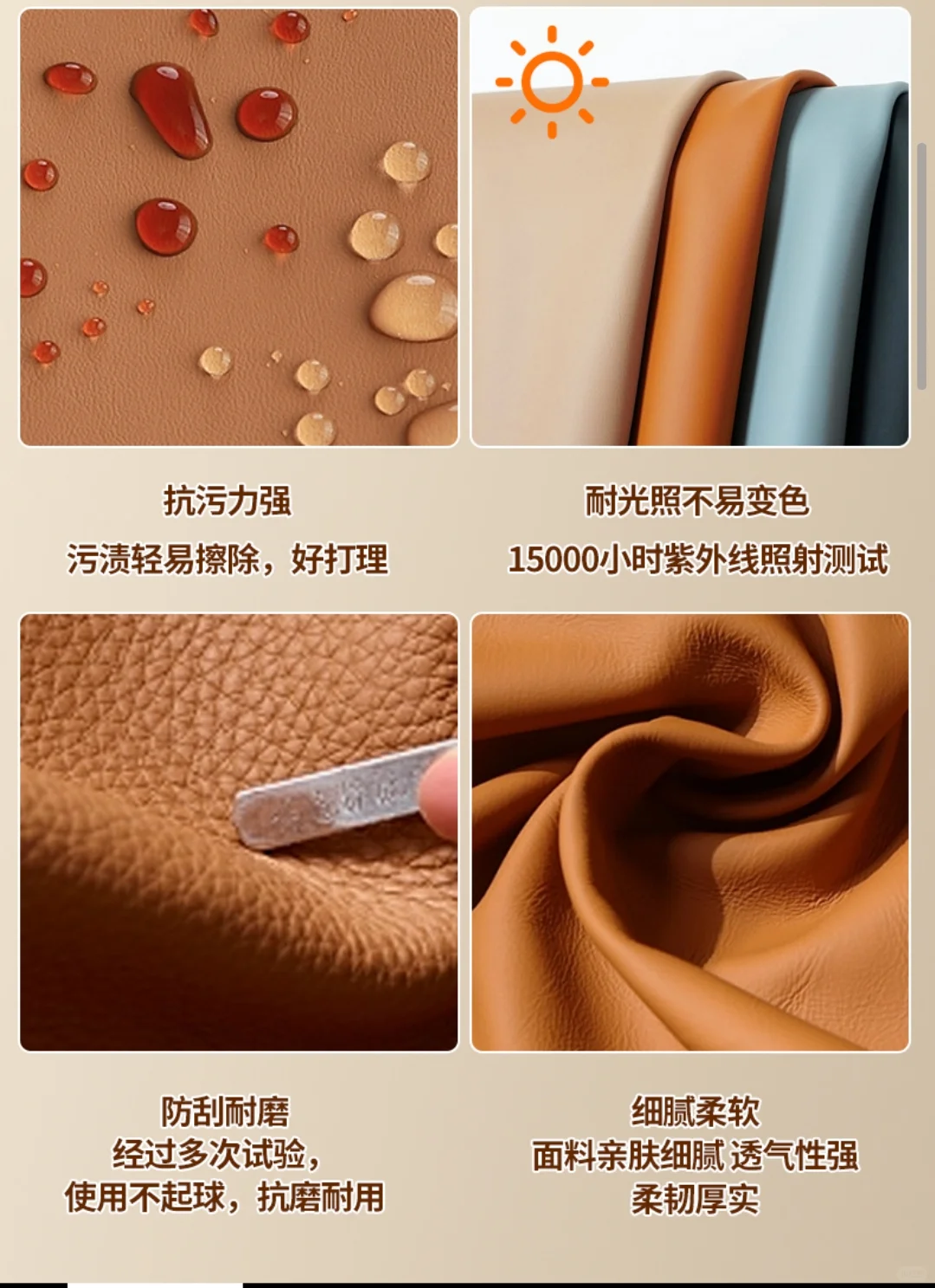 皮百叶,采用超前皮包裹铝片或木片,适合公共空间。表面做了抗撕裂、色牢度和耐磨测试