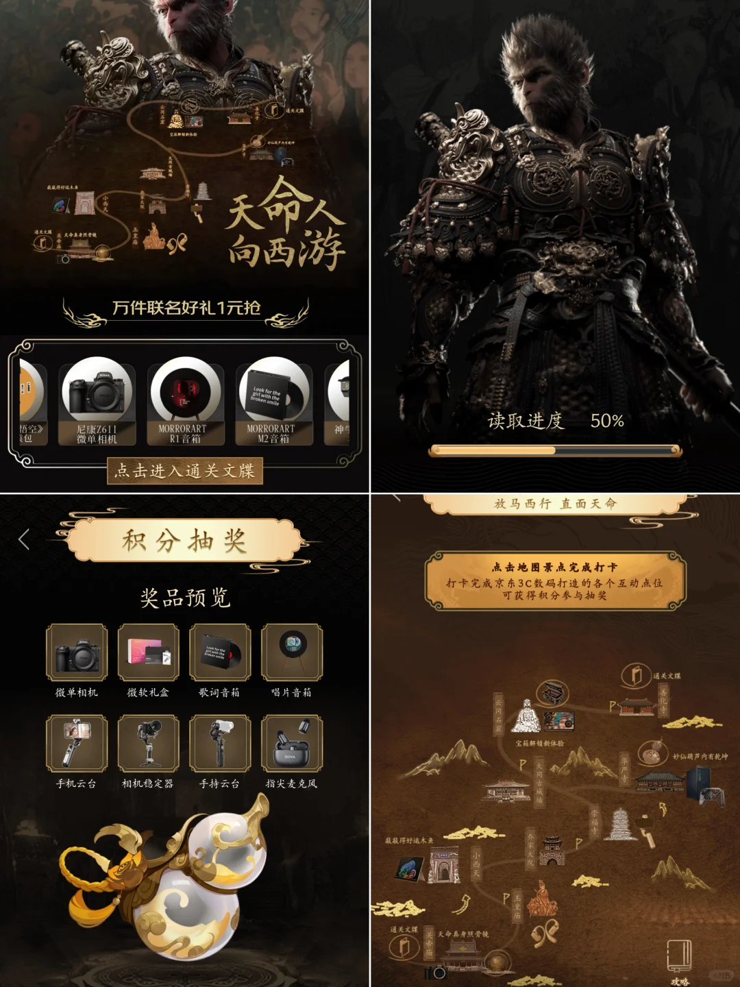 京东也联合《黑神话:悟空》推出了《黑神话·悟空》主题月,并结合游戏场景在各大景点打造了天命人定制路线“天命人向西游”体验之旅