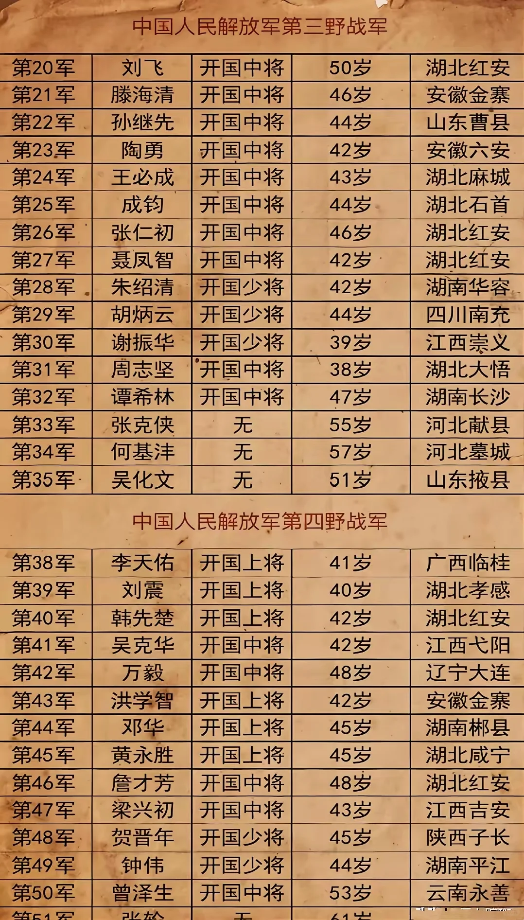 1军到4军,6、7、8军由西北野战军纵队改编,许光达大将,贺炳炎、王震、彭绍辉3位上将。
