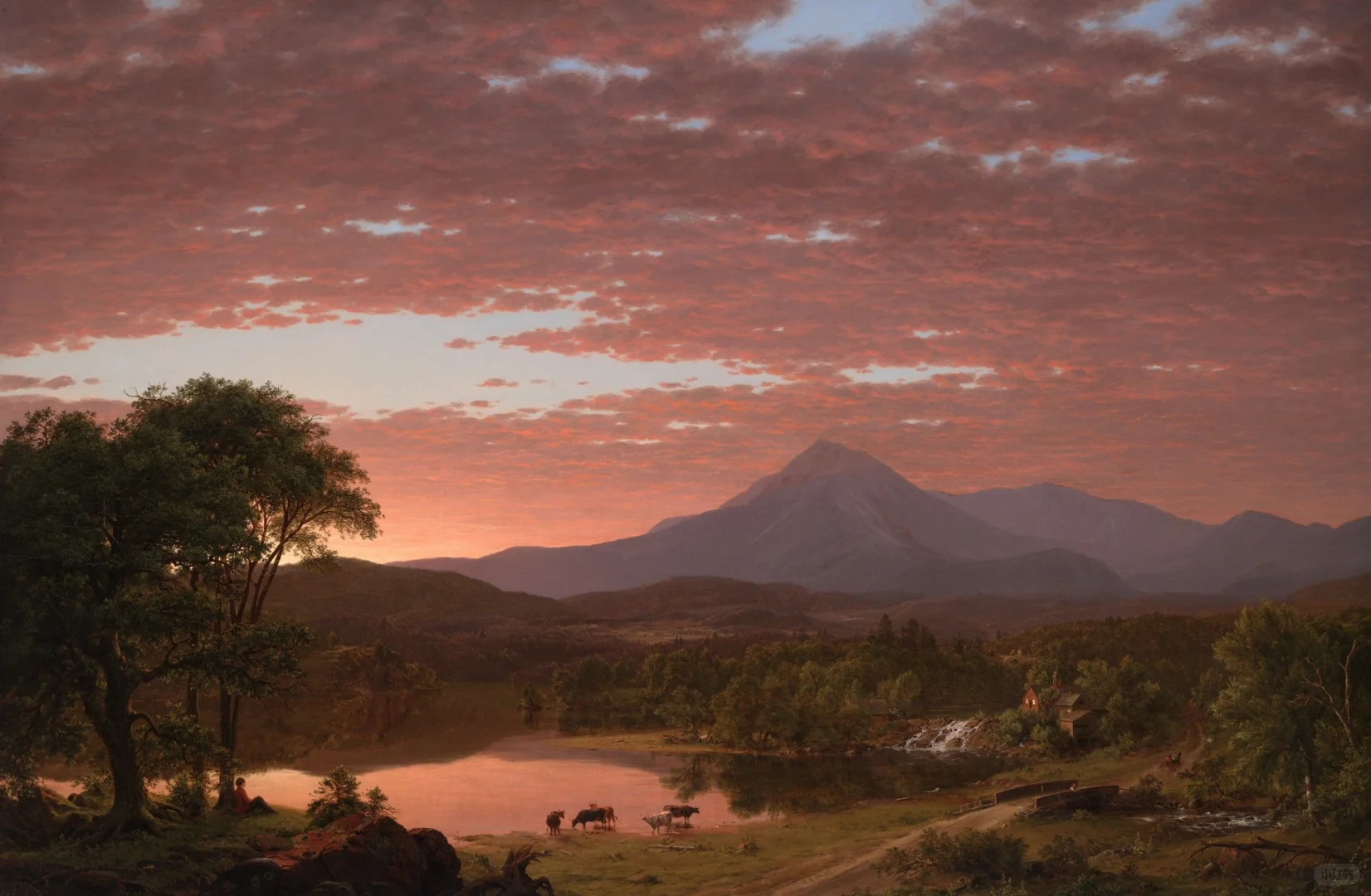 弗雷德里克·埃德温·丘奇 (Frederic Edwin Church) 在亨利·大卫·梭罗 (Henry David Thoreau) 的文章《克塔登和缅因州森林》(Ktaadn and the Maine Woods) 发表后不久就前往缅因州北部。