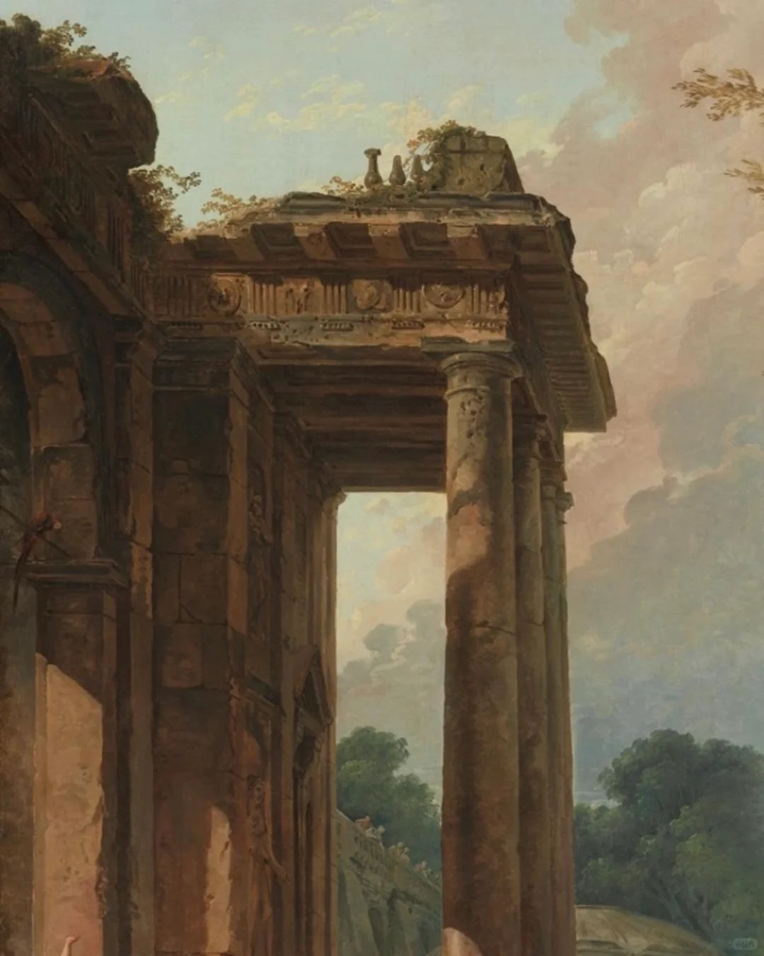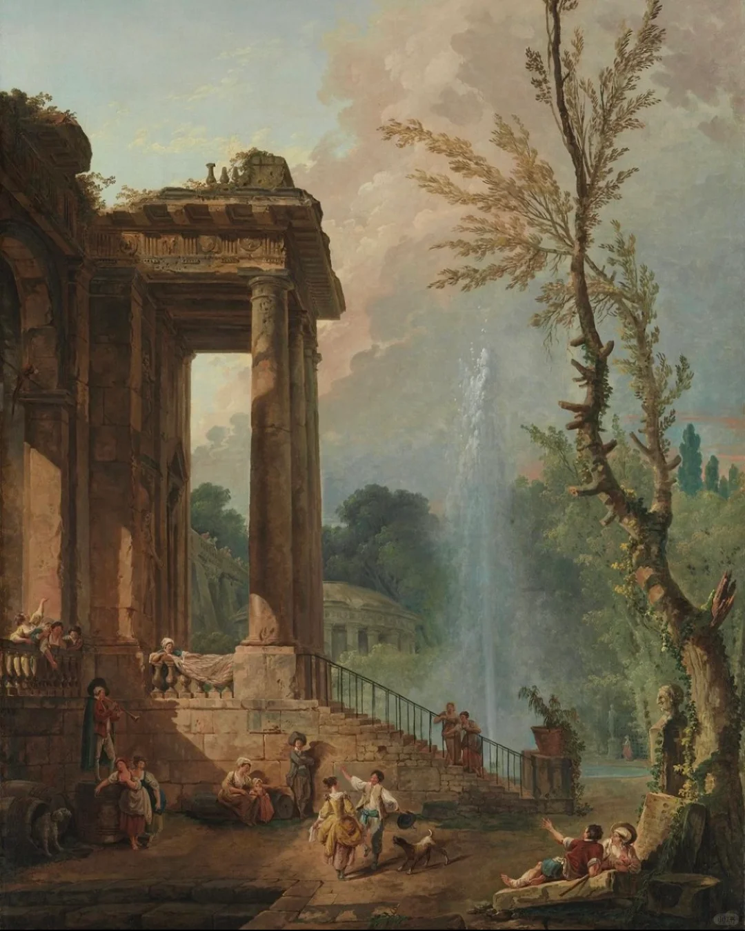 . Hubert Robert, The Portico of a Country Mansion, near Florence, 1773年,大都会艺术博物馆,纽约 . .