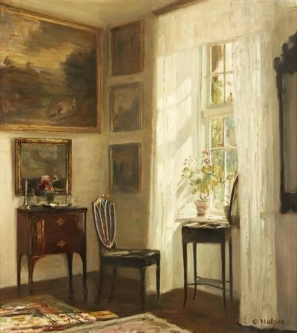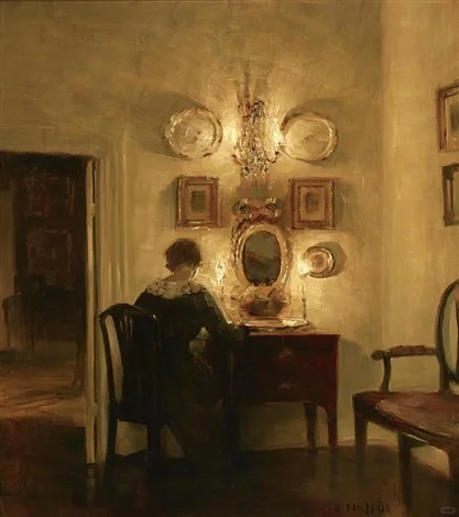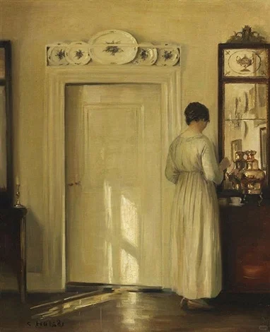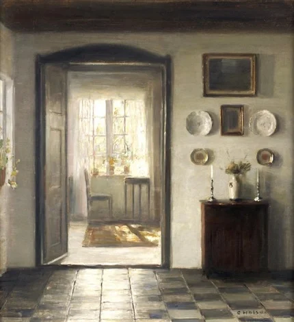 这位热衷于画室内美学的画家霍尔索(Carl Vilhelm Holsøe)和他的同时代人摆脱了黄金时代室内装饰的感伤,为这一传统流派注入了永恒的神圣感。