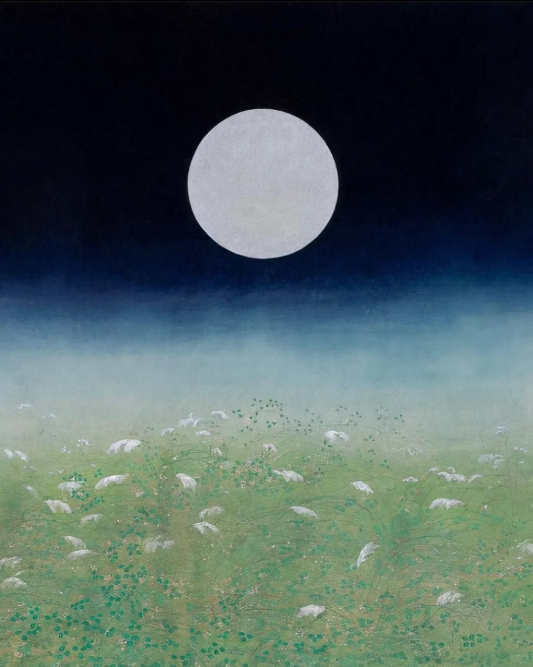 Tonouchi Mishõ: Moon at Musashino • Color on paper • 58.6 × 72.7 cm • 昭和时代 1937 🪶 但是别谈论花园,别谈论月亮 别谈论玫瑰,别谈论大海 谈谈你知道的 谈谈在你骨髓里震动 在你眼神里造出光影的 谈谈你的骨头不停歇的疼痛 谈谈眩晕,谈谈你的呼吸 你的悲伤,你的背叛 我必须经历的过程那么黑暗,那么安静 噢,谈谈寂静吧 谈谈静默/皮扎尼克 . . .
