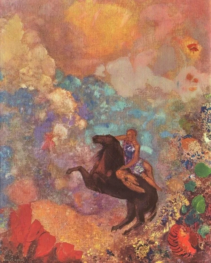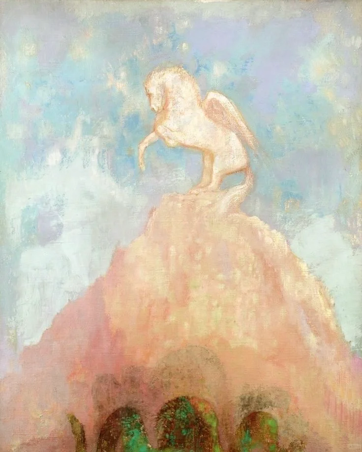 🪽 Odilon Redon (雷东)画的马,在一种向上的力量感的同时 又弥漫着浓郁的梦幻与自由。乘上这匹马抑或是登上这座山,像拥有了全世界的美景之后的一种满足,一场美梦。 . . 🪶 “马换了一次又一次,路愈赶愈远,再要回去也来不及了,于是我只得继续往前赶。 朝雾早已在一片肃穆中消散净尽,那花花世界就展现在我的面前。” 狄更斯 | 远大前程 . . .
