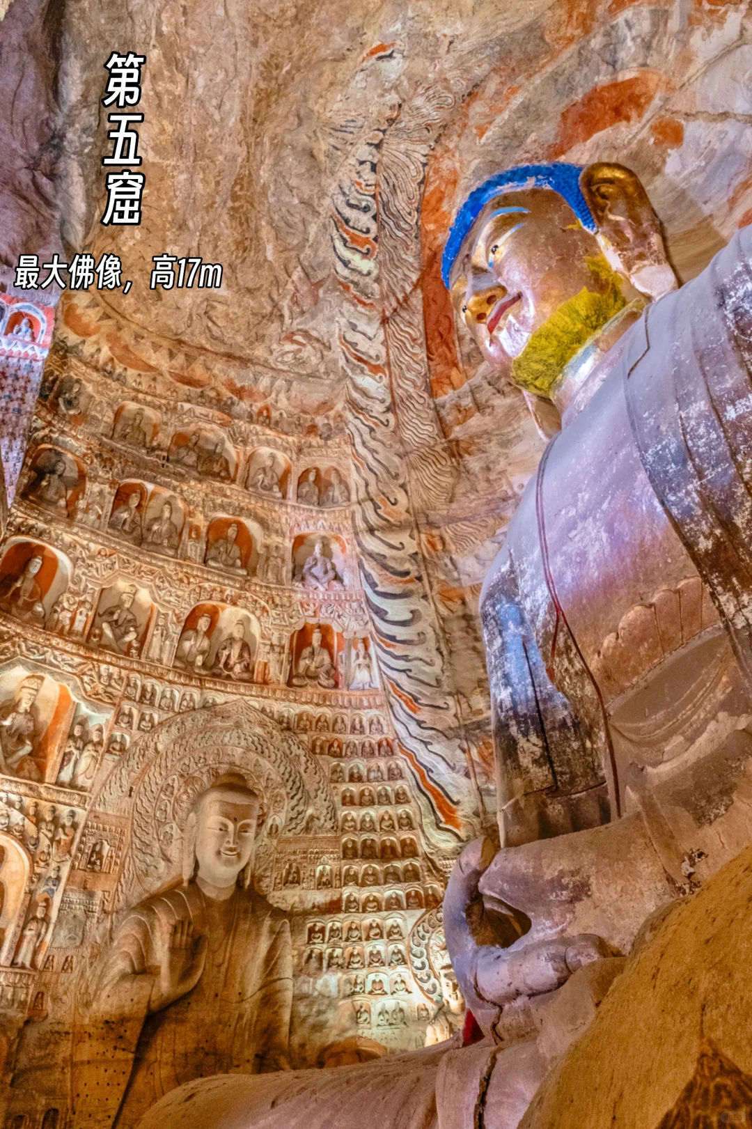✅5窟:大佛洞,云冈最高大佛,佛高17.4米,蓝发琉璃眼珠佛造像