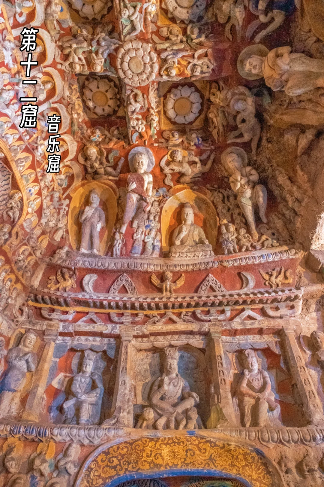 ✅12窟:音乐窟,五彩斑斓,有整排的天宫乐伎、飞天乐伎等