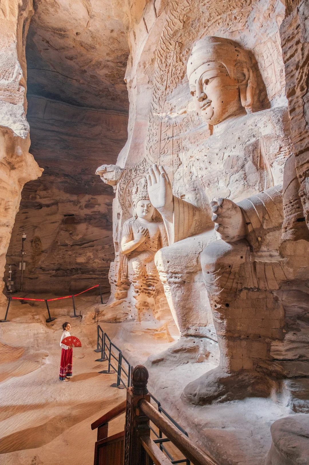 其中16窟:立佛洞正在修缮,国庆假期看不到了