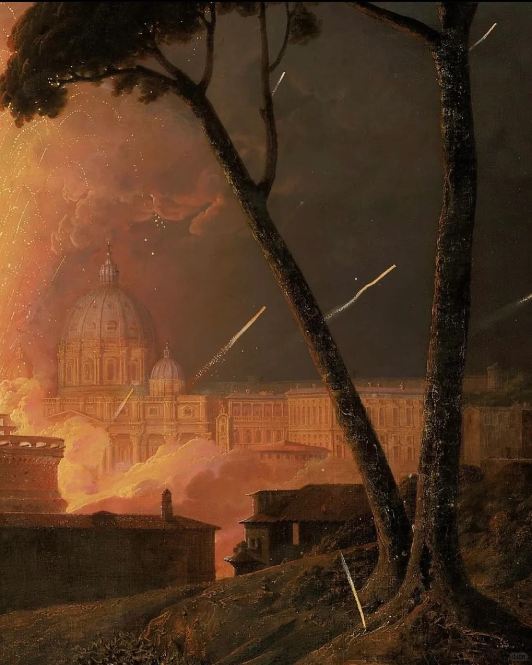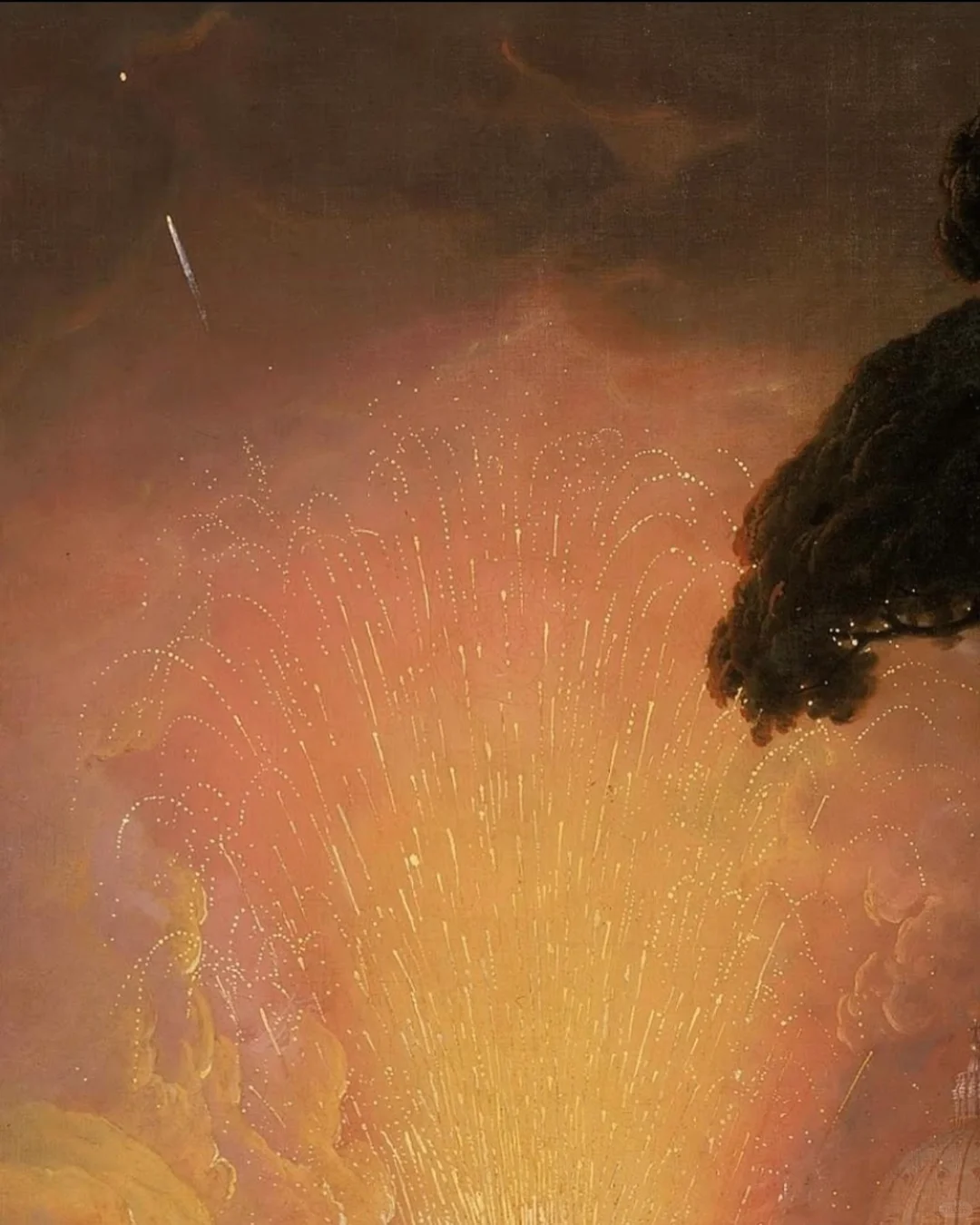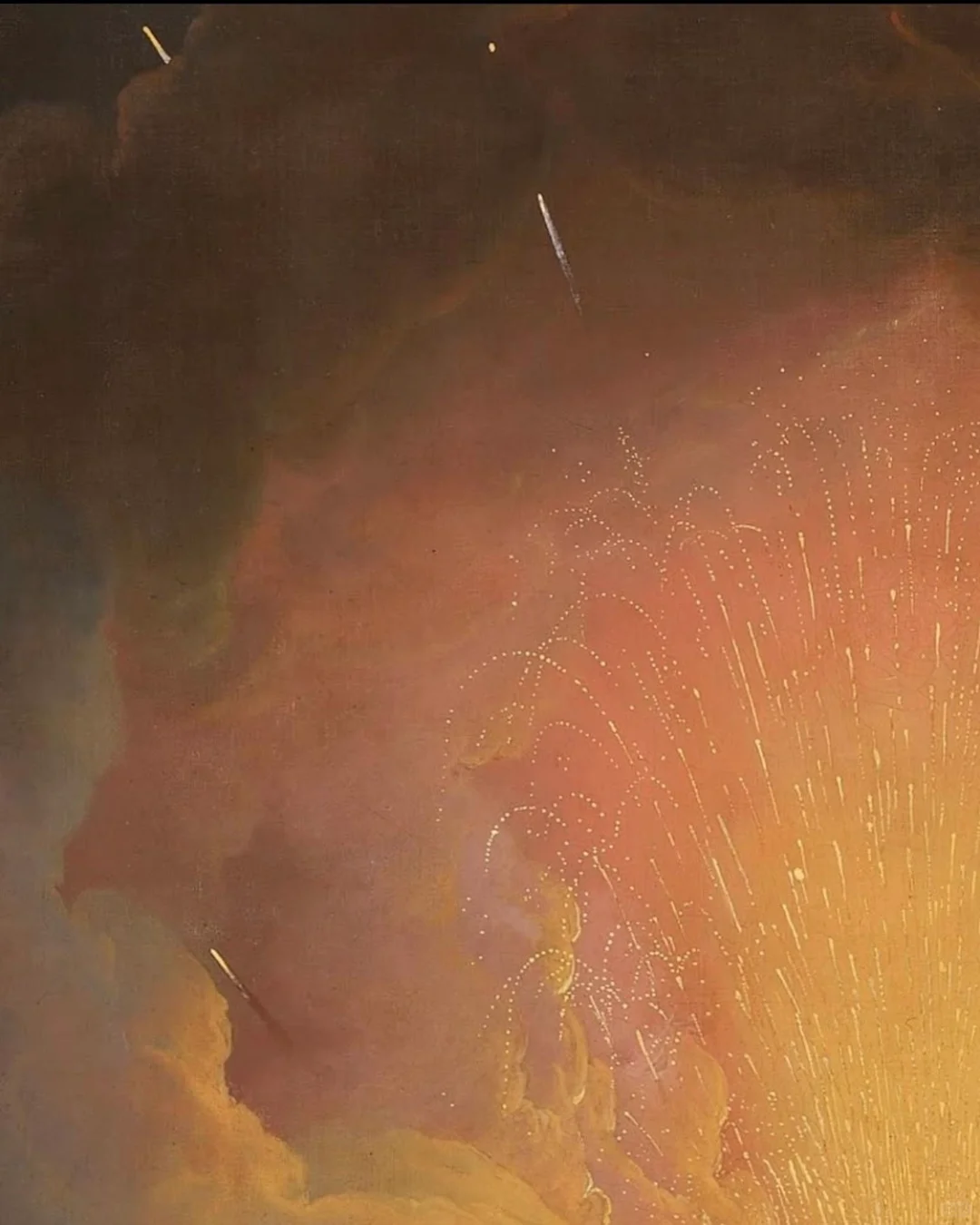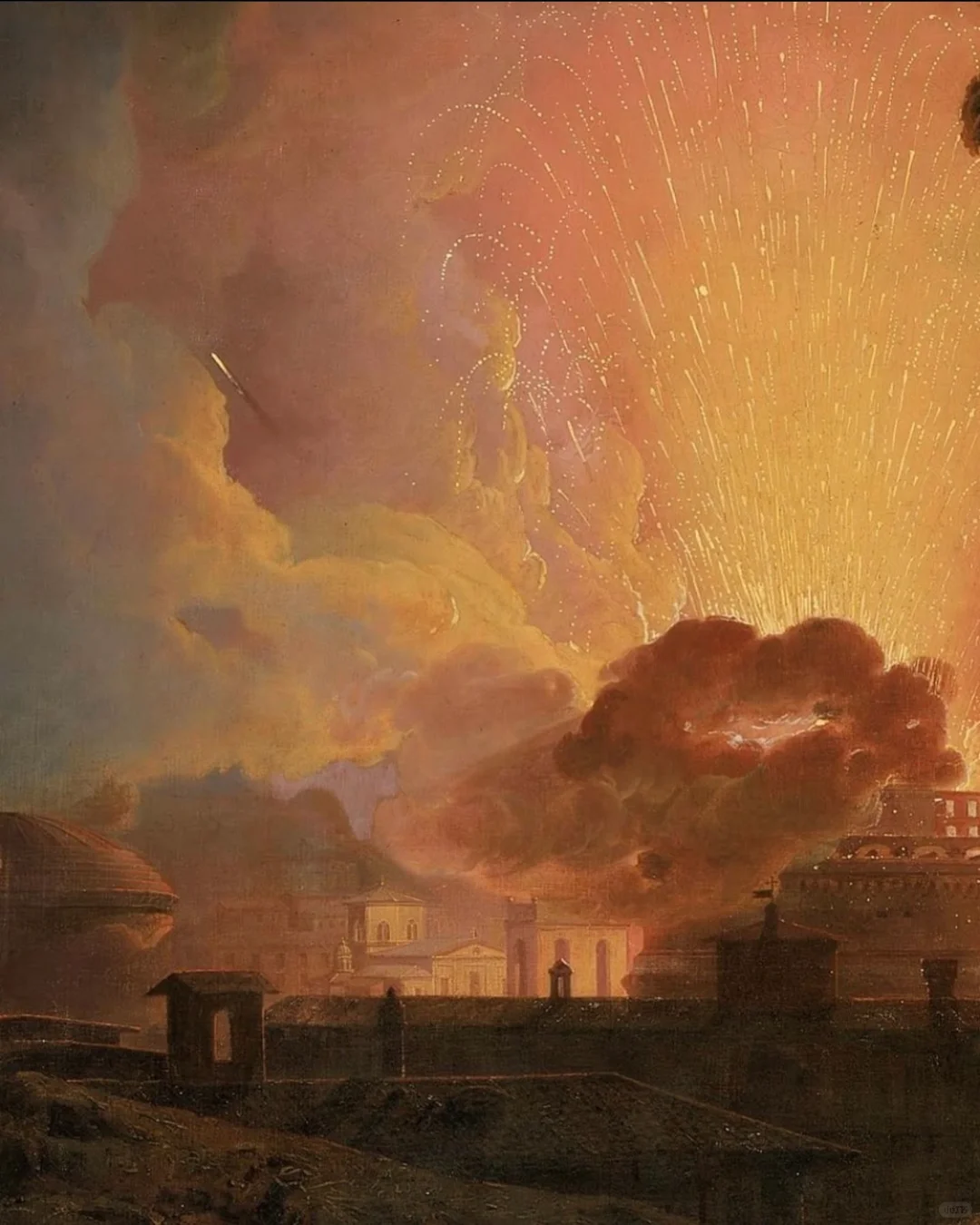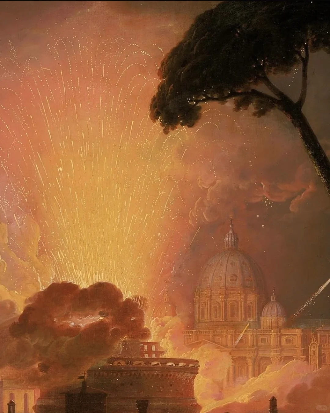 . 假如有一艘要沉没的船 你只能救一个 你会救谁 问这样问题的人最讨厌了 为什么一定要问这样悲伤的问题 反正一定要问 为什么不选择快乐的问法 清澈沁人的夏夜 去便利店买啤酒 顺便买了烟花 你会选择和谁一起放烟花呢 / 悠长假期 . . 🪄 Joseph Wright of Derby, The Annual Girandola at the Castel Sant'Angelo, Rome, 1775-76 . . .