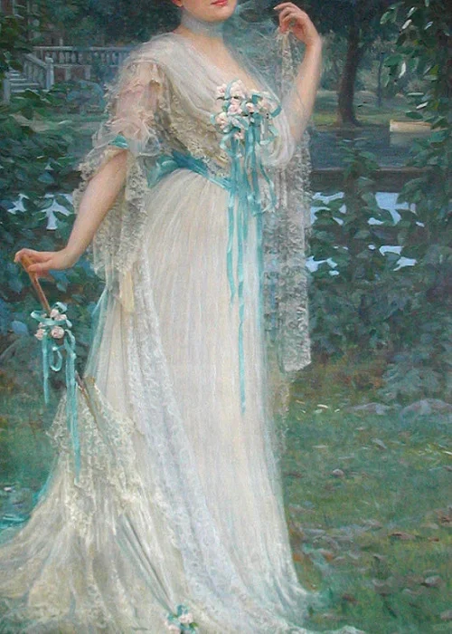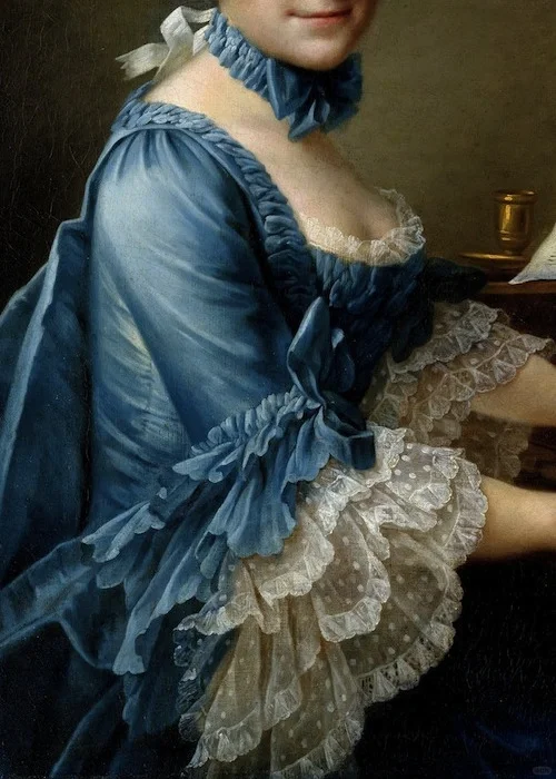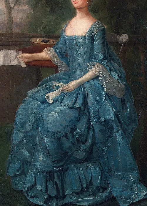 洛可可盛期更趋轻盈、装饰丰富,色彩柔和,使用大量的褶皱、蕾丝边和蝴蝶结装饰,展现了女性的柔美与优雅。紧身胸衣流行。