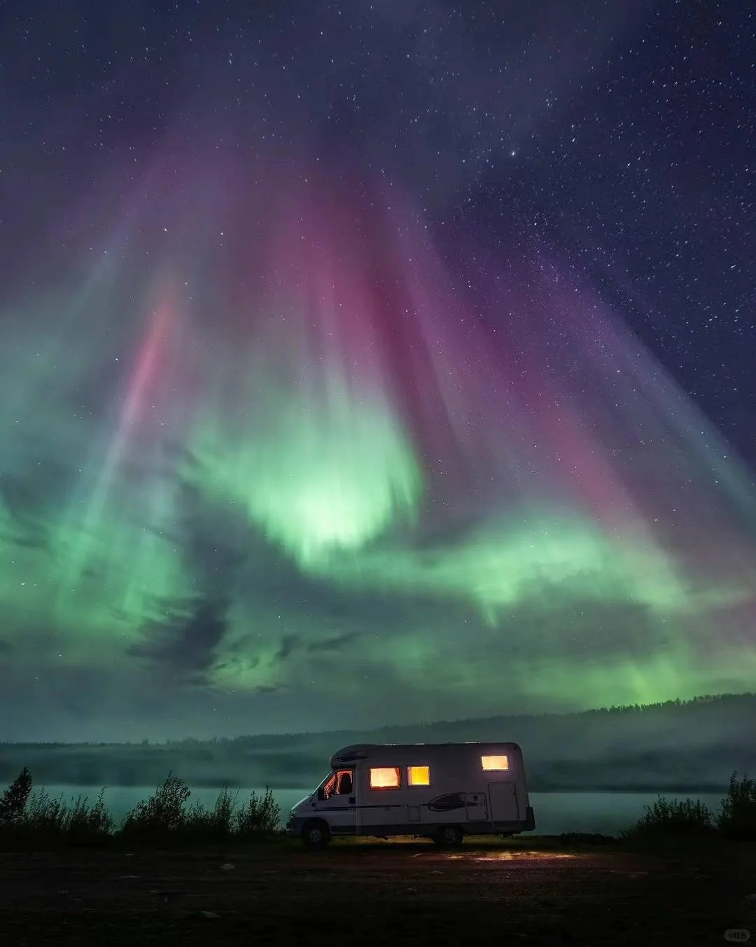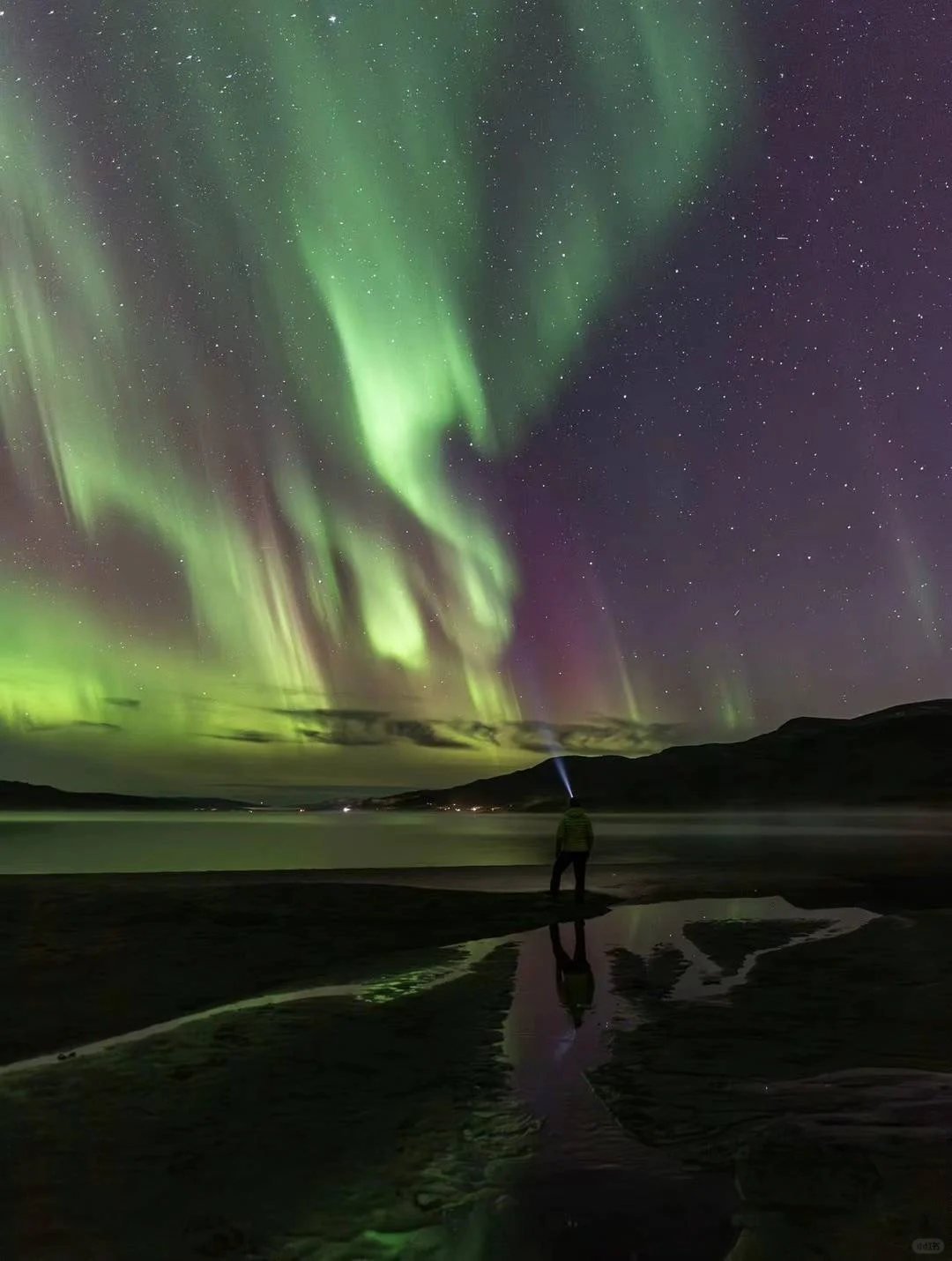 📍瑞典北部arvidsjaur观测极光指南: 1、下载一个监测粒子强度app 2、选择一片没有遮挡物的湖面,带上厚衣服 3、架好机位,调整参数,等待,开拍