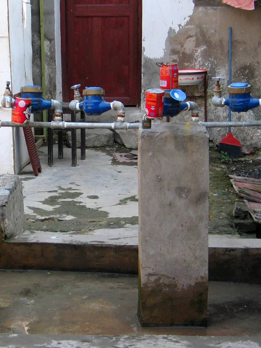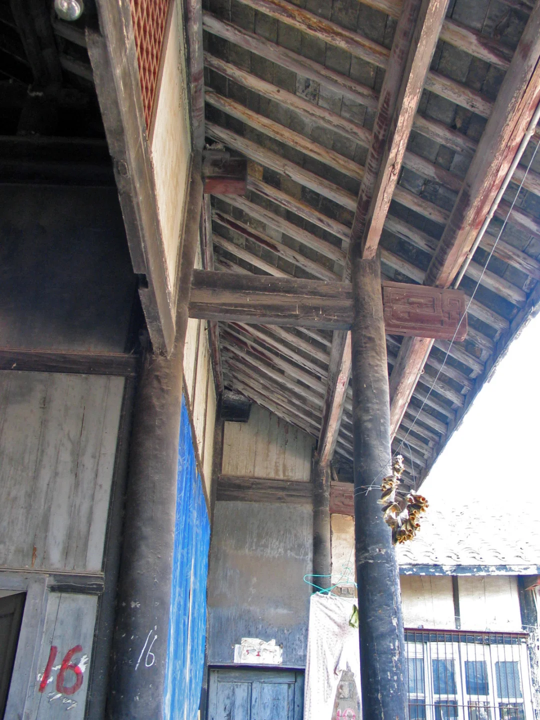 [自拍R]穿过月洞门,左边一座现代楼房,右边是另一组合院,前后三间房,南北五间房。看各间房门上写的号码,宅子住了约30户人。