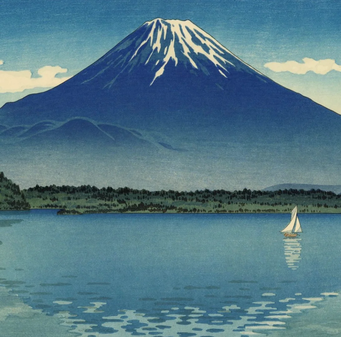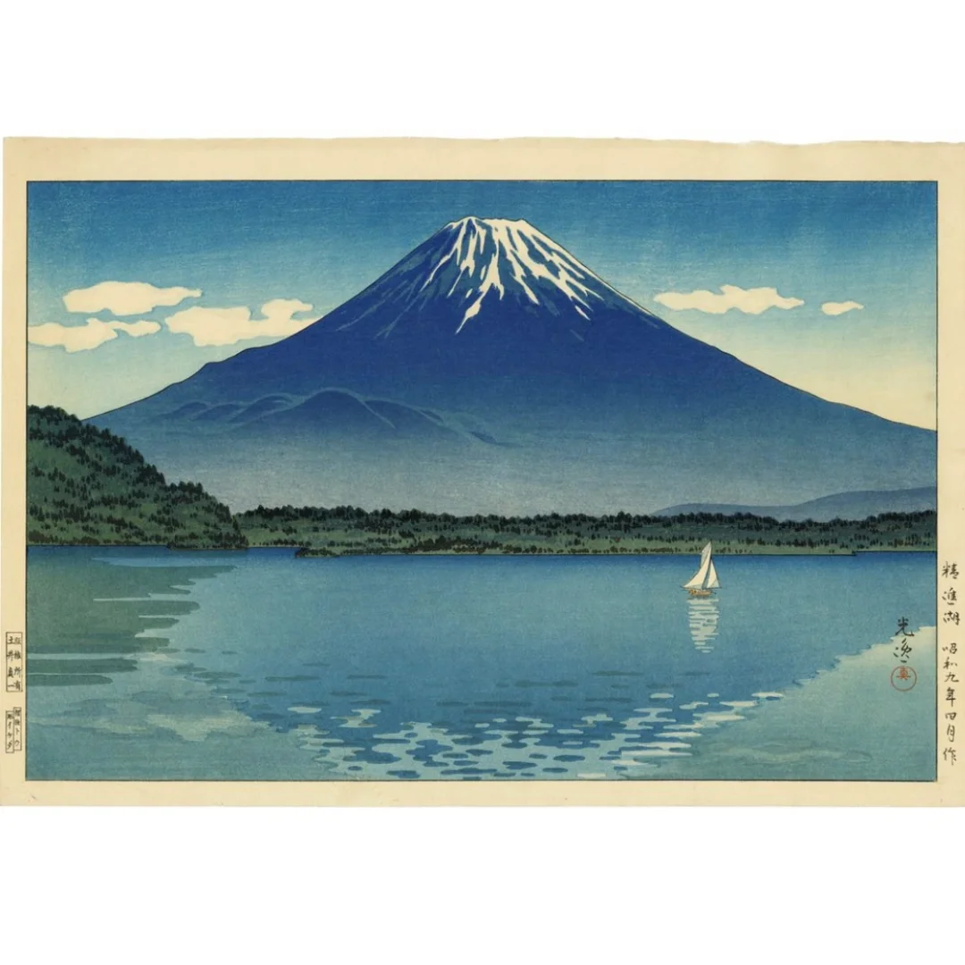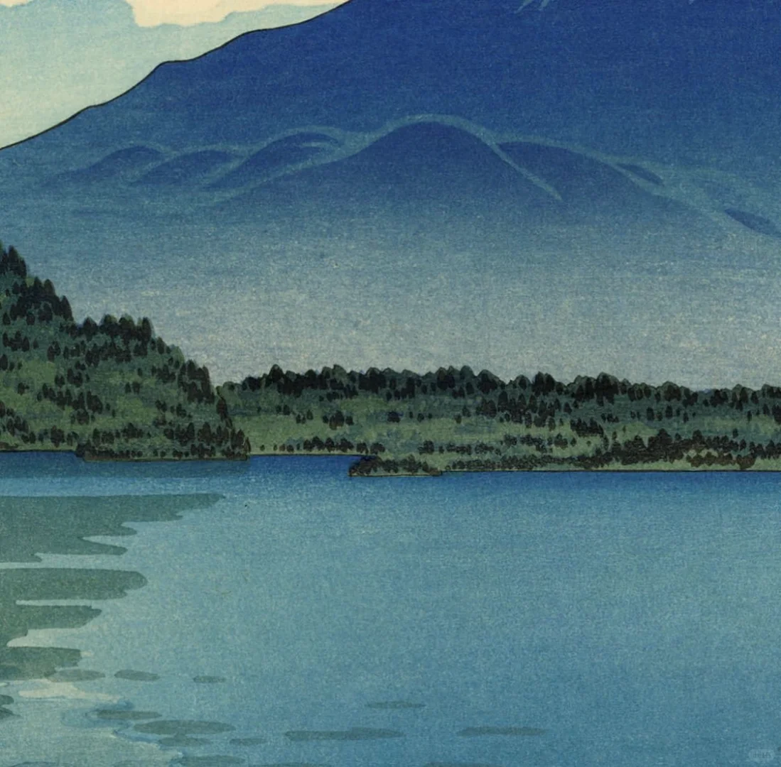 🗻 土屋 光逸「精進湖」 一位明治昭和时期的新版画家, 1879 年出生于静冈县滨松市。15 岁时,土屋移居东京,师从著名明治版画艺术家小林清亲的木版画师松崎。 💭 在甲午中日战争期间(1894-1895 年),土屋出版了一系列版画,成为清亲的学生,并在此后的 19 年中一直担任家臣。 土屋将名所或“著名景点”与浮世绘风格融合在一起,创造出了融合了地点力量、声望和艺术创造力火花的新名所。在整个太平洋战争期间,土屋一直在创作新版画,直到 1949 年 70 岁去世。 . . .