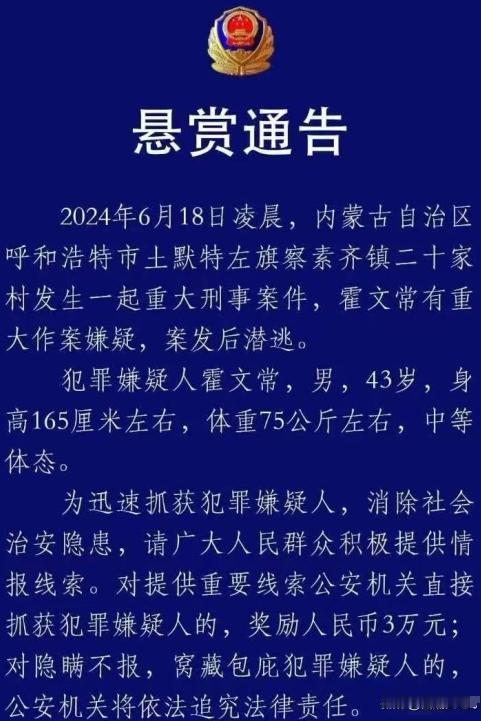 “善良真的可以保命!”内蒙灭门案6人中唯一的幸存者就是这家的儿媳妇!只因为她本性善良,曾说过一句话,被凶手放过了。 (信源:光明网 2024-06-19 悬赏3万通缉霍文常!内蒙古警方:5人遇害,他有重大作案嫌疑) 那夜血腥味弥漫了整个蒙古包,小兰眼睁睁地看着他,霍文常从一个老实巴交的庄稼汉变成了手握屠刀的恶鬼。 牛家五口一个个倒在血泊中,而小兰成了这场人间惨剧唯一的见证者。 警察赶到的时候,小兰的脑子一片空白,只是机械地重复着:“是他霍文常,是他干的……”恐惧自责像无形的绳索将小兰紧紧束缚,小兰像个提线木偶任由命运摆布。 小兰原本是草原上出了名的热心肠,谁家有个大事小情都爱找小兰帮忙。嫁给牛家老二那会儿大家都说小兰命好,牛家在村里是数一数二的富户。 可小兰心里清楚牛家人,尤其是小兰的丈夫和公婆,蛮横霸道惯了在村里作威作福。 当初,霍文常外出打工,为了方便,就将自家土地租给了牛家。一开始,牛家还算守信,按时付租。可时间一长,就开始以各种理由拖欠租金,最后干脆赖账不给。 小兰曾亲眼见过霍文常低声下气地向小兰丈夫讨要租金,却被小兰那蛮横的丈夫指着鼻子骂:“滚!再敢来要钱,打断你的腿!” 小兰知道对于农民来说,土地就是命根子。小兰劝过丈夫让他把租金还给人家,可他不但不听还骂小兰胳膊肘往外拐。 小兰可怜霍文常也同情他。他家就靠着那几亩地过活,如今租金要不回来日子怎么过?小兰偷偷塞给他一些钱,却被他不卑不亢地拒绝了。 “小兰你的心意我领了,但这钱我不能要。欠债还钱天经地义,我就不信这世上还没个说理的地方!” 小兰敬佩他的骨气却也为他感到担忧。牛家在村里势力大黑白两道通吃,霍文常一个老实巴交的农民哪里斗得过他们? 电力公司赔偿金事件成了压垮骆驼的最后一根稻草。 那段时间电力公司要在村里架设电线杆,其中一根就穿过霍文常租给牛家的那块地。按照规定这笔赔偿金应该归土地所有者所有,也就是霍文常。 可牛家人仗着自己势力大硬说是自己的地,把赔偿金全部收入囊中。霍文常得知此事后气愤不已,再次找牛家理论却遭到了牛家人的毒打。 那天小兰亲眼看到霍文常被人从牛家院子抬出来,他被打得鼻青脸肿嘴角还挂着血迹,眼神里充满了绝望和愤怒。 小兰知道他彻底被逼上了绝路。 那天晚上小兰正在厨房准备晚饭,突然听到院子里传来一阵嘈杂声。小兰好奇地走到门口,透过门缝往外看却看到了令小兰终生难忘的一幕: 霍文常手持一把明晃晃的砍刀,像一头失去理智的野兽,疯狂地砍向小兰的丈夫和公婆。鲜血飞溅惨叫声划破夜空,小兰吓得瘫软在地浑身颤抖。 小兰以为自己也会死,可他只是冷冷地看了小兰一眼就转身离开了。 后来小兰才知道,那天晚上牛家五口人,除了小兰无一幸免。 小兰活了下来却陷入了无尽的自责和痛苦之中。如果小兰能再勇敢一点早点站出来,也许就能阻止这场悲剧的发生。 小兰接受了心理医生的治疗,努力从那段黑暗的记忆中走出来。小兰开始参加各种公益活动,尽小兰所能帮助那些需要帮助的人,仿佛这样才能弥补自己犯下的罪过。