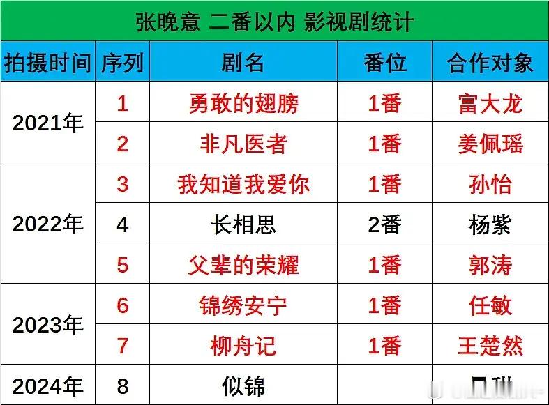 有些男女明星合作的重合度很高田曦薇合作的男明星:张凌赫,王鹤棣,小曾白鹿合作的男