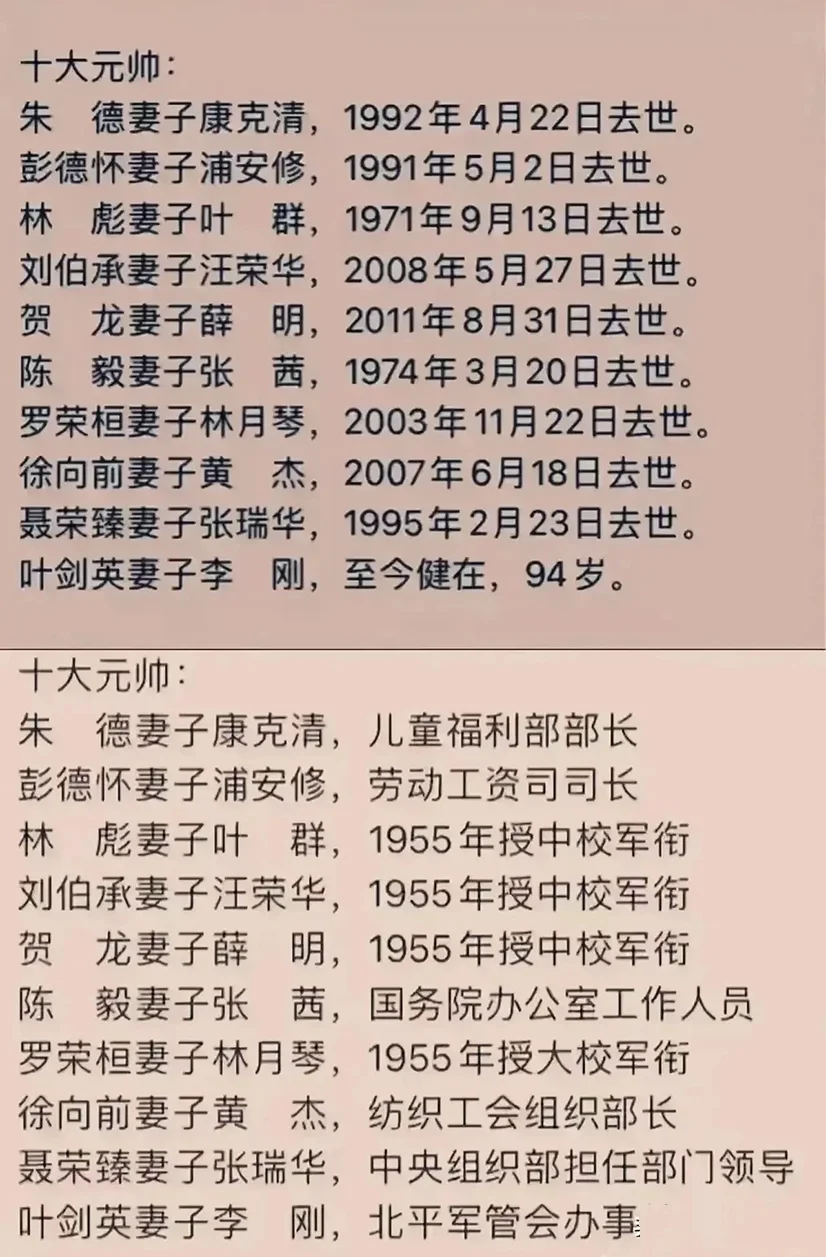 十大元帅的妻子们