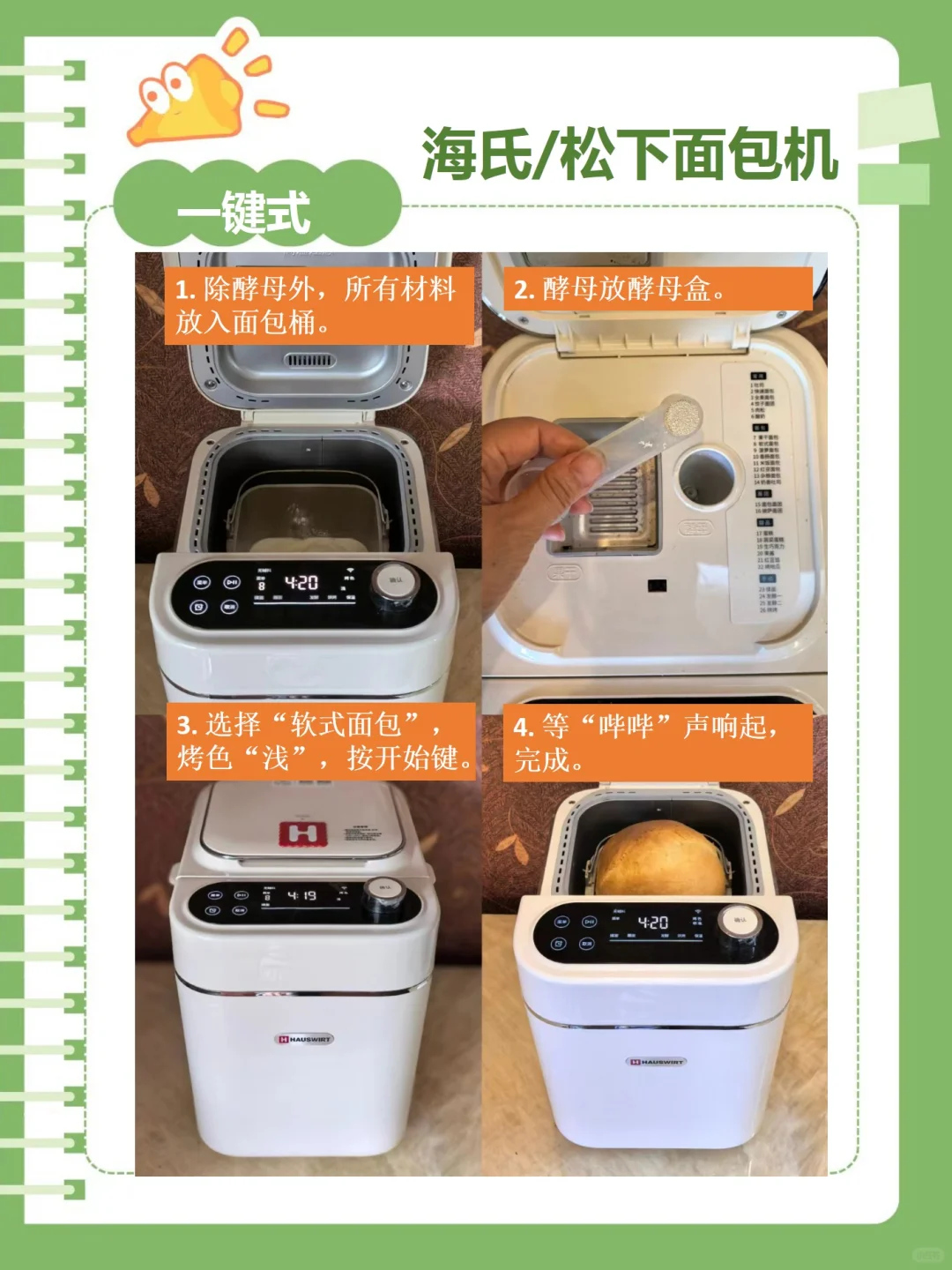 [庆祝R]图中演示是用海氏A5面包机做的,我有好几个面包机,但每次都不自觉的翻了它的牌来做,“软式面包”和“快速面包”用的最多,成功率高,还有就是“暂停键”非常有用,请姐妹一定要好好利用“暂停”,看图解里有标注。面包机有时候很难根据环境温度增减时长,造成发酵过度或不够,只要学会用暂停,你就是用面包机的高手了。