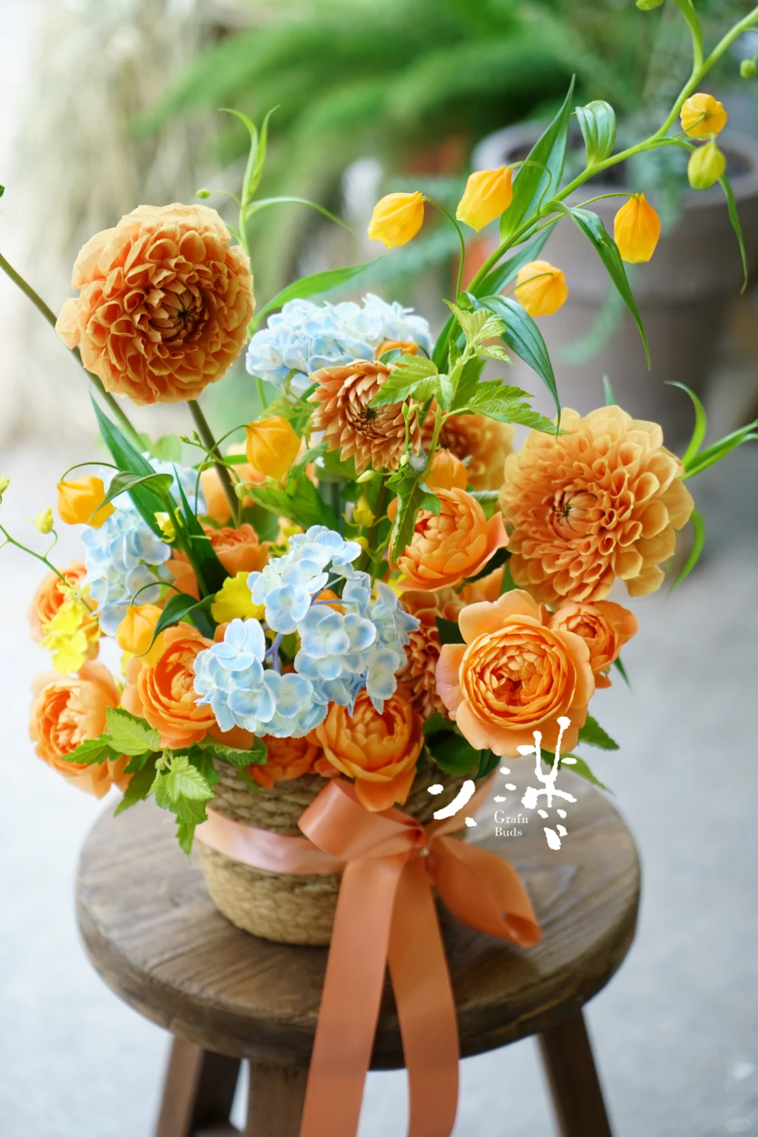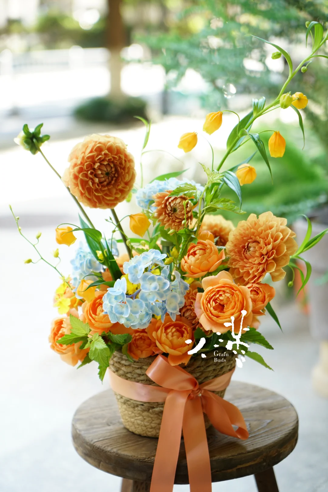 点缀生活的鲜花 杭州花店 鲜花花篮 落日夕阳花篮橙色系花篮杭州花店 小花篮 鲜花分享小满GrainBuds