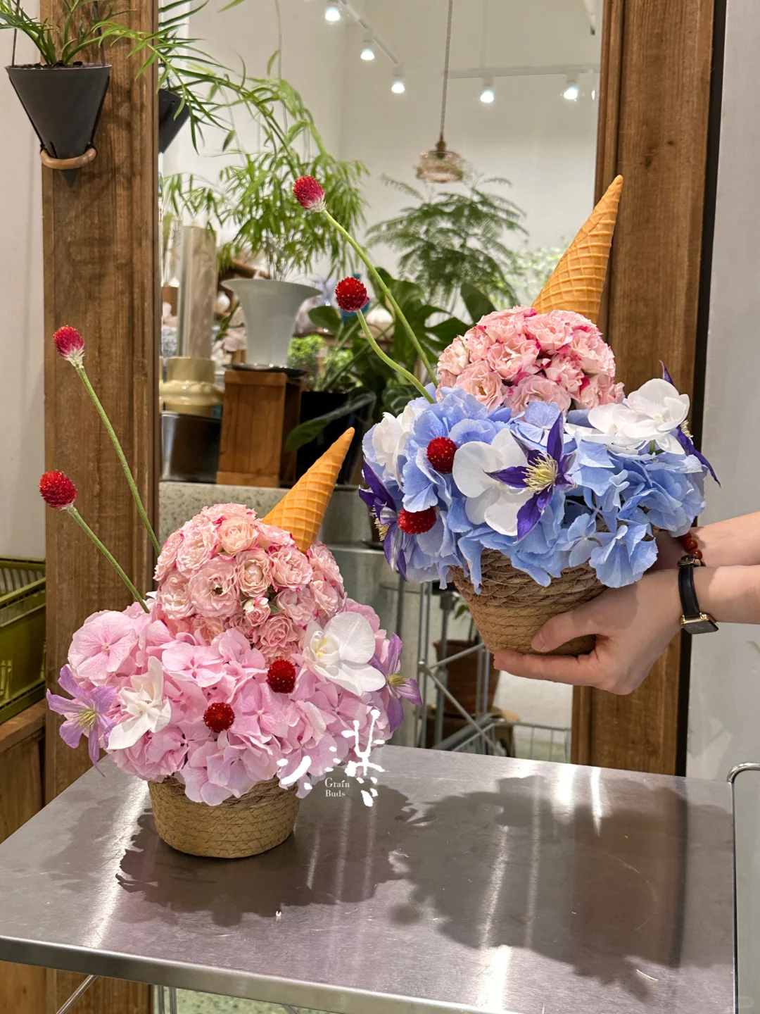 七夕礼物 七夕 点缀生活的鲜花 杭州花店 杭州买花 七夕冰淇淋花盒 七夕花束 小满GrainBuds 鲜花抱抱桶 鲜花花篮