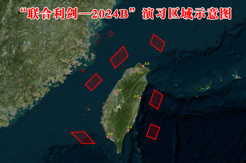 据东部战区10月14日消息,东部战区组织战区内陆、海、空、火箭军等突击兵力,对台岛西北部、台岛东部、台岛东南部、台岛西南部,以及海峡内开展“联合利剑-2024B”演习,据最新公布的演习区域示意图显示,6个演习区域明显越来越靠近台岛。