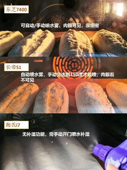 家用烤箱性能不同,操作也不一样,特别是如何制造水雾补湿。我这次特意用东芝7400、长帝S1和海氏i7三个烤箱做了一次,各自的操作步骤如后所示,看看有啥不同?