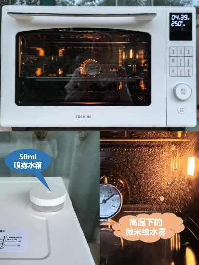 东芝7400:选择“补湿烤”菜单,前10分钟,烤箱每隔1分钟会自动喷水雾。