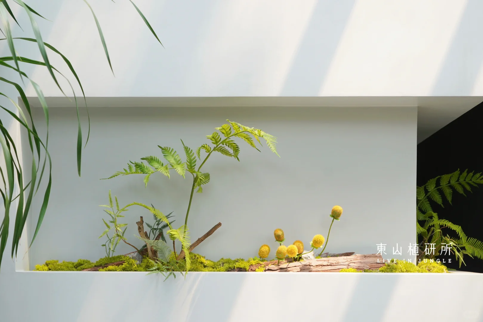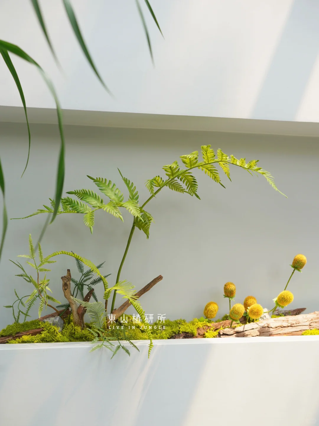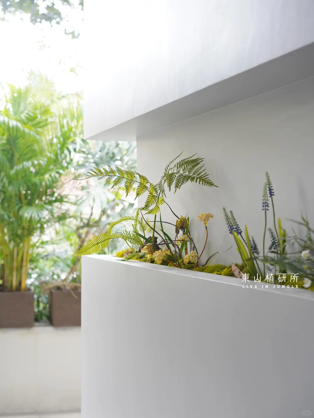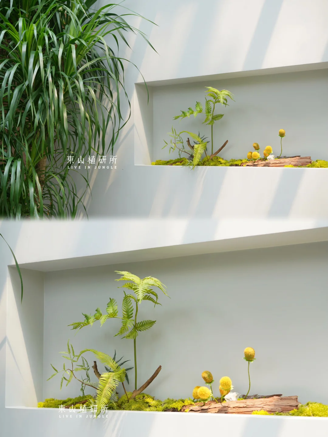 私宅里的mini仿真植物造景 灵动可爱 呼应走廊墙面的造型 恰到好处的阳光 被风吹动的叶子 植物一出现,就有了惬意的氛围 ——————