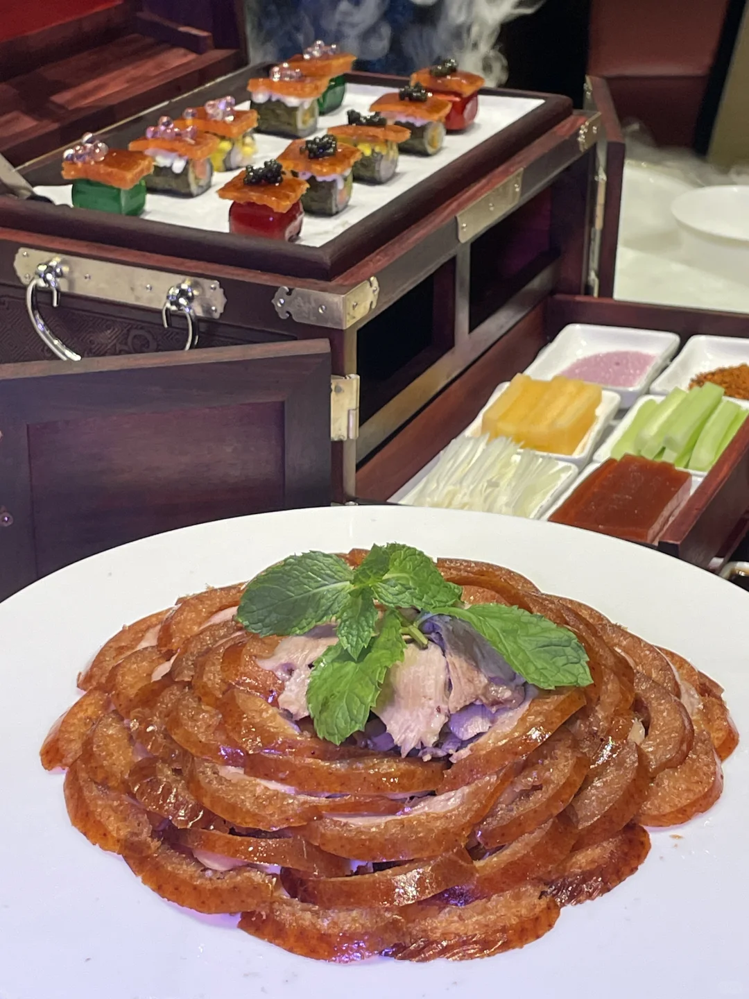 🎈真是没想到,我们丰台也有好吃的京味菜餐厅了,不仅口味正宗,环境也没得说👍 🌟环境: 餐厅的环境优雅大气,有大厅,有各种大小包间,还有二个不同风格的结婚👰礼堂,无论是商务宴请,家庭中秋聚会还是举办婚礼都非常合适。婚礼礼堂布置得美轮美奂,浪漫的氛围让人仿佛置身于美丽的花园or海底世界。 🥢菜品: ✨九五至尊寿司烤鸭:这道菜真的是创意十足!烤鸭的皮脆肉嫩,搭配上精致的寿司卷,口感丰富,层次分明。一口下去,满满的幸福感。😋 ✨鱼籽酱酥不腻烤鸭:经典的烤鸭与鱼籽酱的完美结合,鱼籽酱的鲜美为烤鸭增添了一份别样的风味。烤鸭的外皮酥脆,鸭肉鲜嫩多汁,吃起来一点也不腻。👍 ✨新派海鲜毛血旺:这道毛血旺颠覆了传统的做法,又加入了多种海鲜,让整道菜更加鲜美可口。里面的食材非常丰富,鸭血、毛肚、海鲜等煮得恰到好处,大虾🍤的个头超大,口感是麻辣鲜香,超级下饭。🍚 💁服务: 餐厅的服务也非常周到,热情友好,让人感觉格外贴心。 🏠店铺:胡同禧宴·新京菜(小屯路店) 📍地址:双林东路5号院2号楼