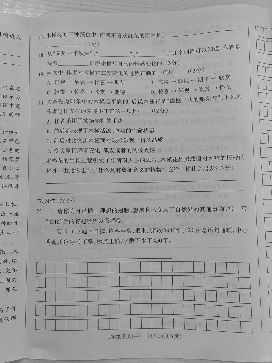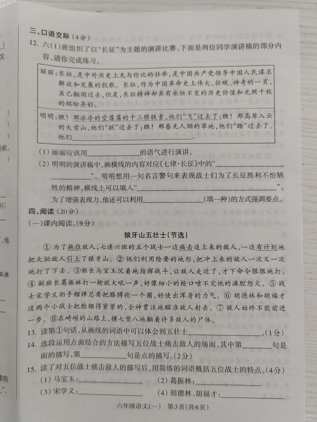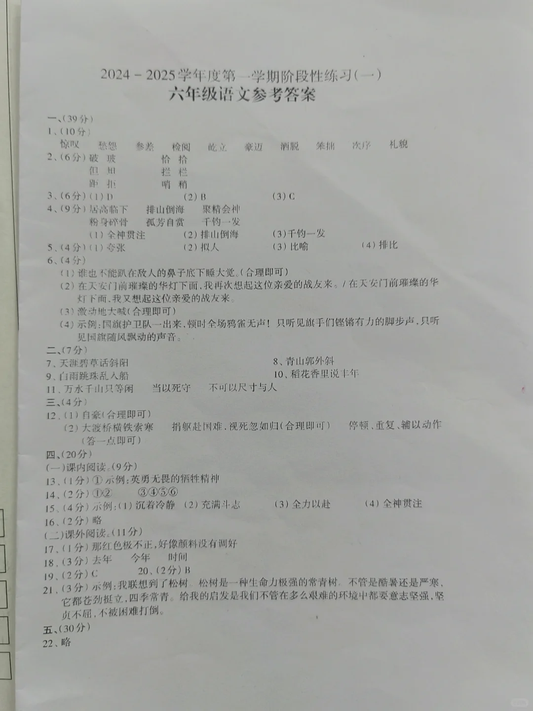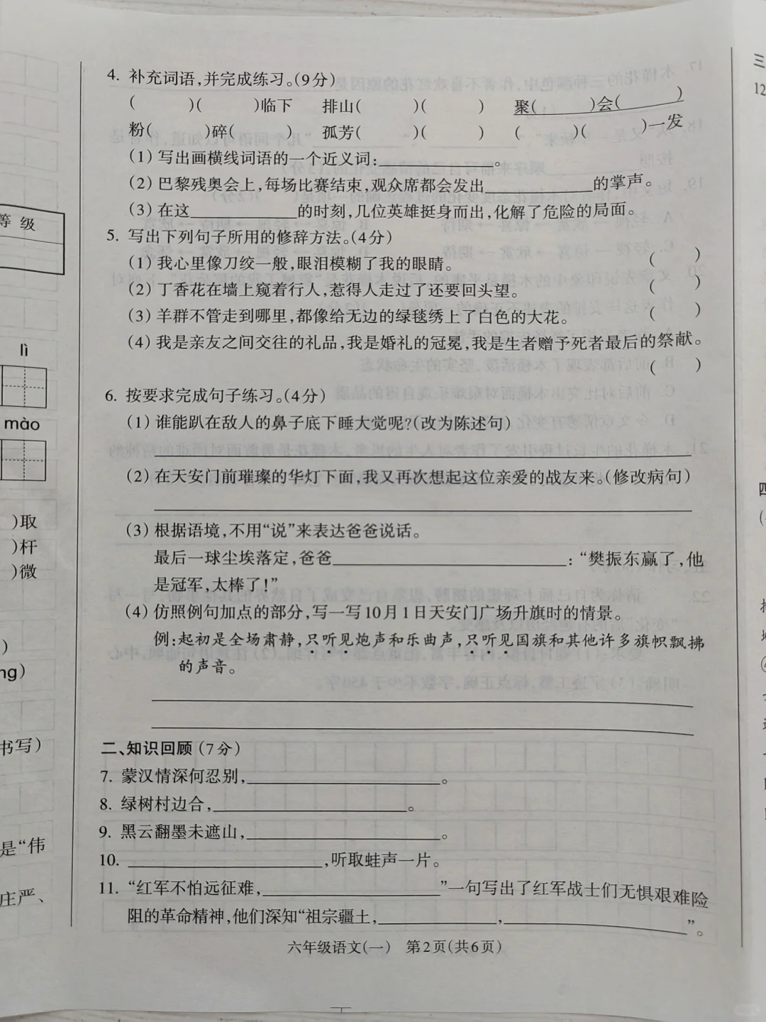 考察范围:第一、二单元 试卷整体上难度不大,侧重基础知识点考察。