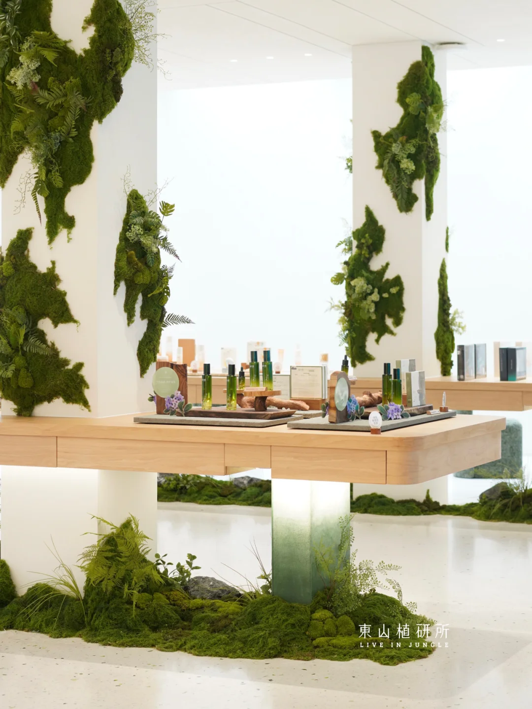 商业空间绿植设计 溪木源首个线下品牌空间 探寻自然界的植物、矿物、水源… 在自然之息中,寻找与大自然的深层联结 体现及丰富布置对项目产品、环境的意象传递 搭建与自然对话的桥梁 感受舒心、愉悅与自然繁茂野趣 ————