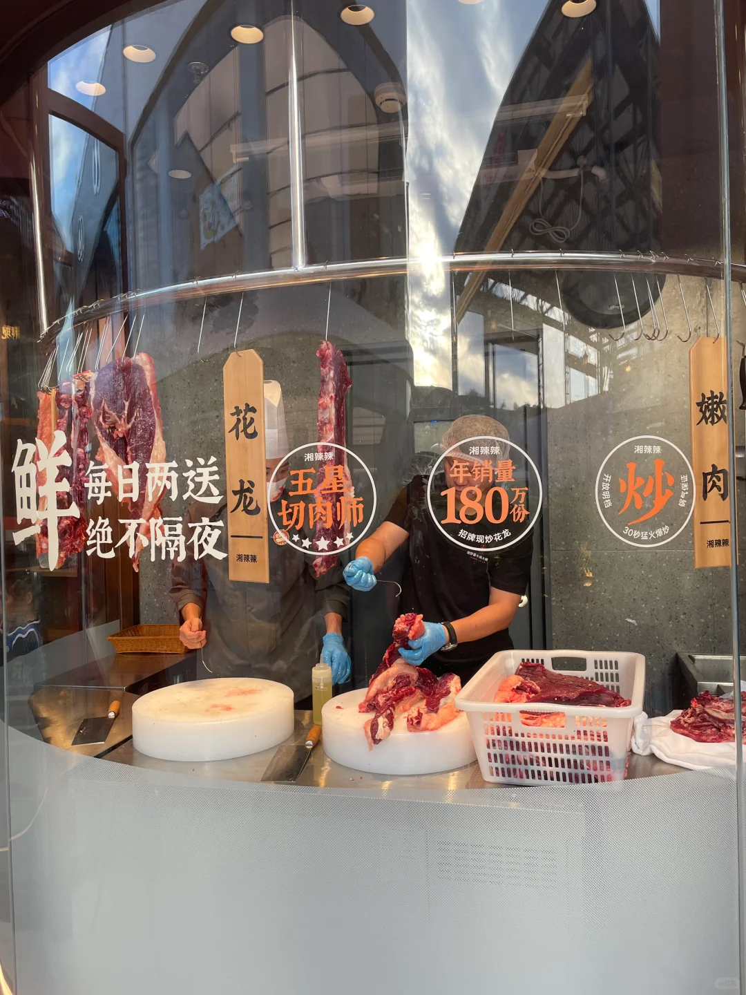 🎈作为湘菜人气王,它真的实至名归。一进店就能感受到那浓郁的烟火气氛围,热闹非凡。在店门口可见厨师正在切肉,牛肉的品质相当不错,肉眼可见的新鲜,店内是明档猛火快炒,厨师们厨艺精湛。😍