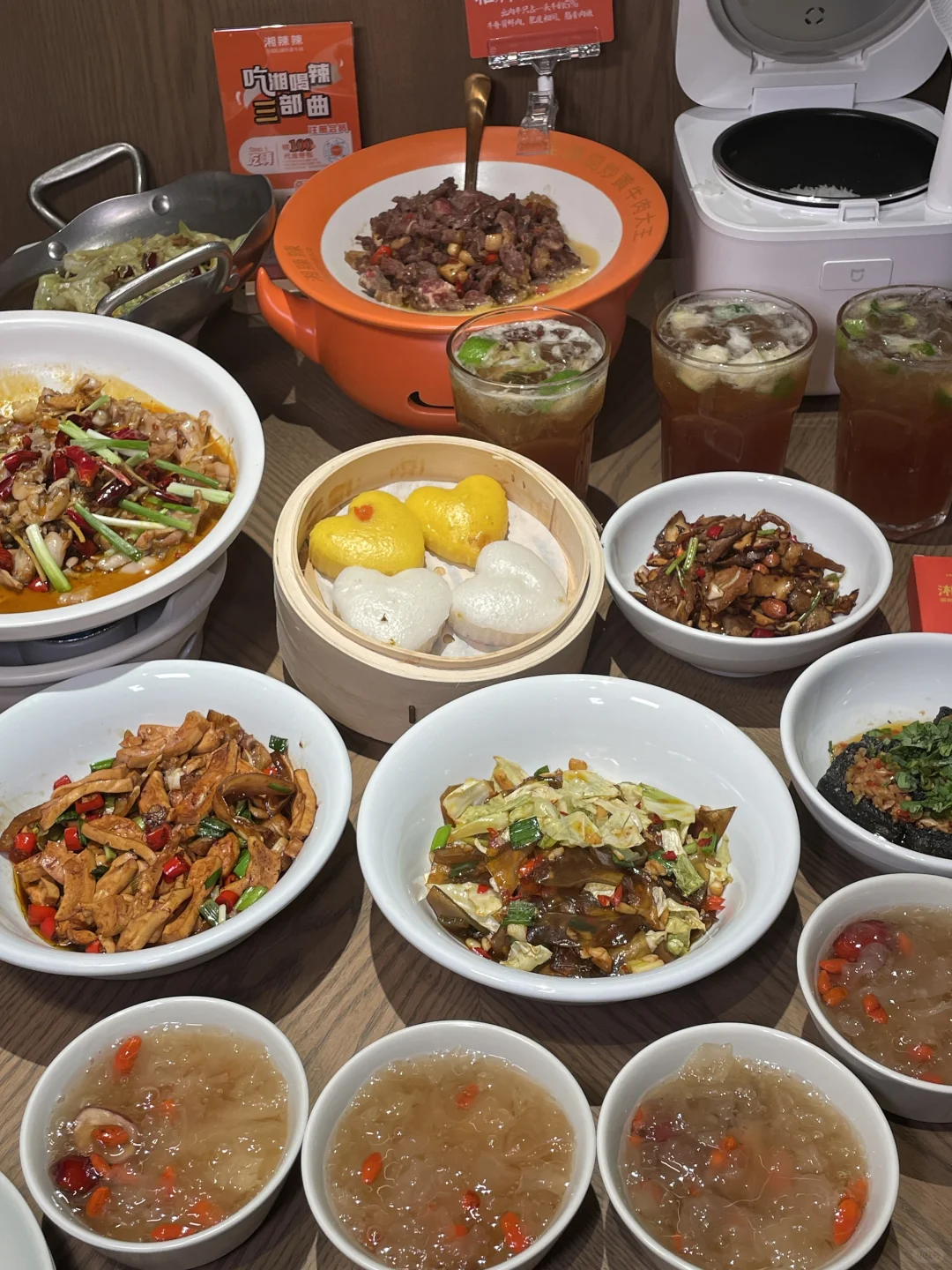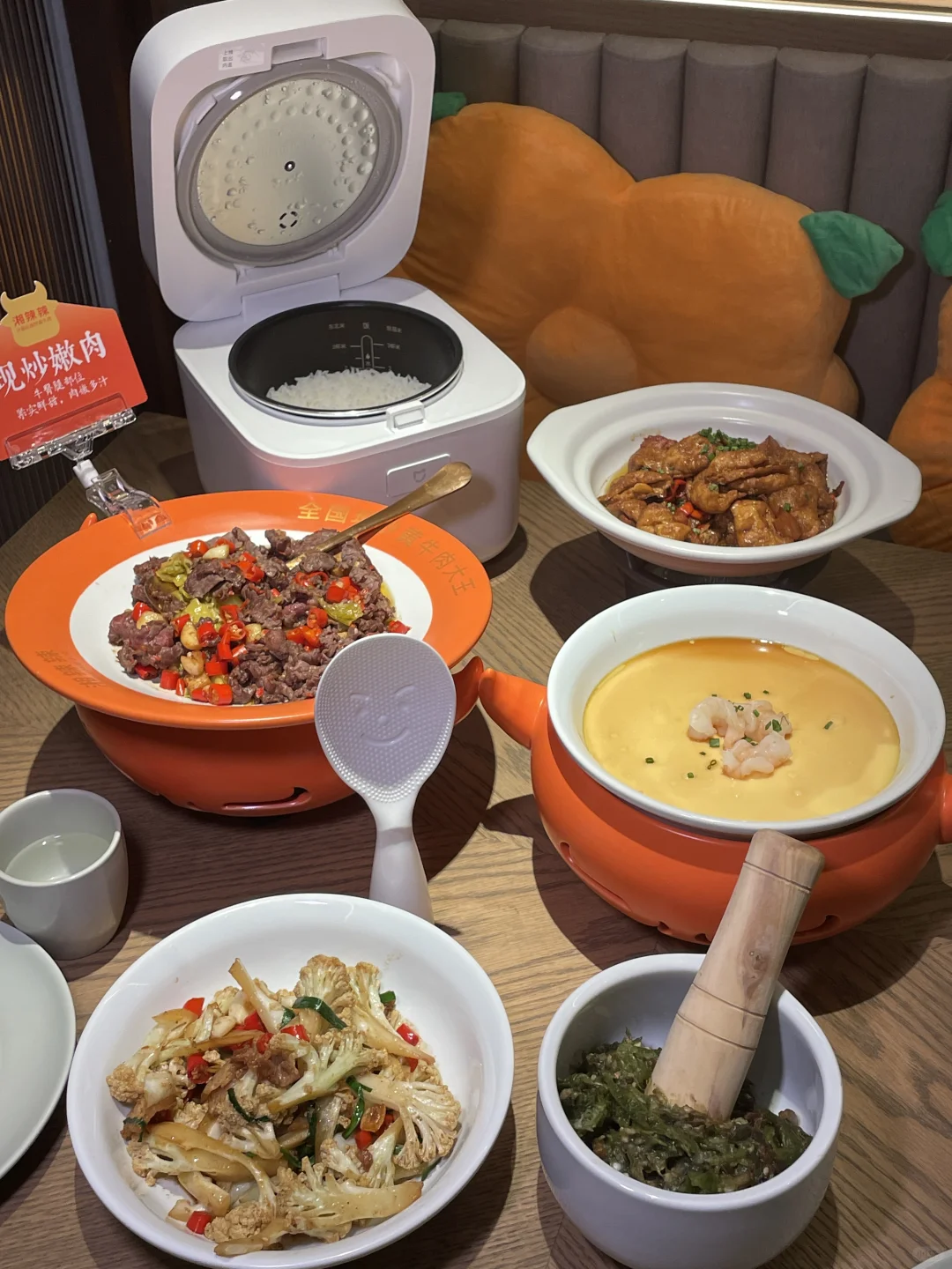 这家的大米饭🍚也很好吃,选用优质的五常大米,还带着香甜软糯的红薯,连着电饭煲一起直接端上桌。还有衡阳油豆腐烧肉,擂辣椒茄子皮蛋也都是下饭菜,真是太香了,推荐👍