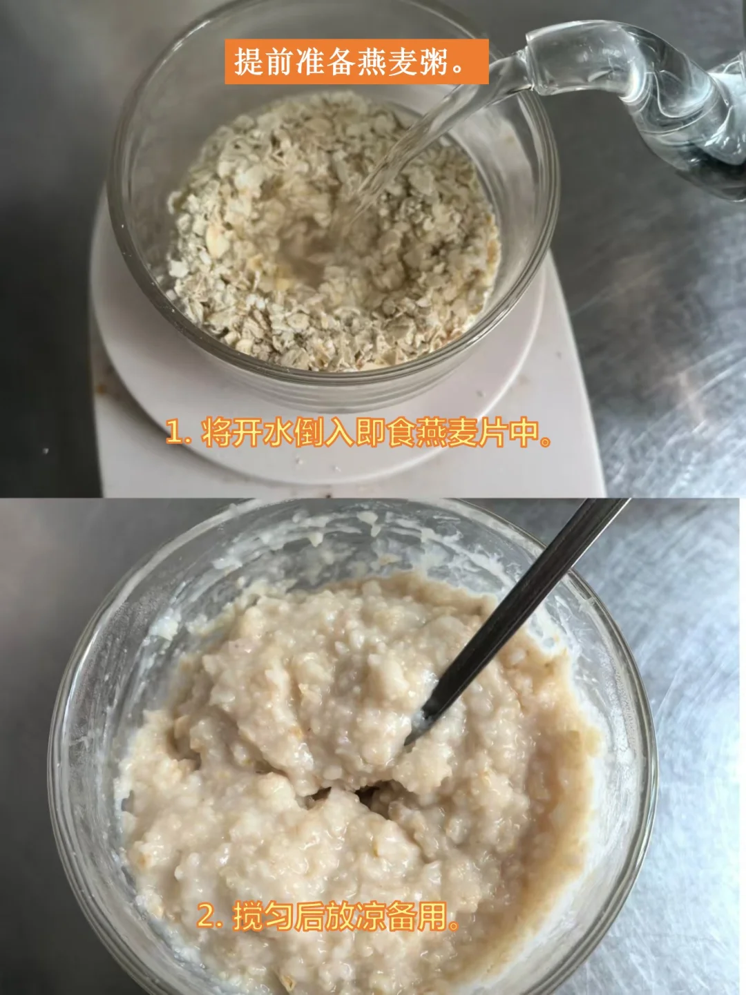[一R]燕麦粥的作用类似于烫种,能有助于发酵,延缓面包软化。需要提前准备,用开水泡软燕麦,放凉后才能用。