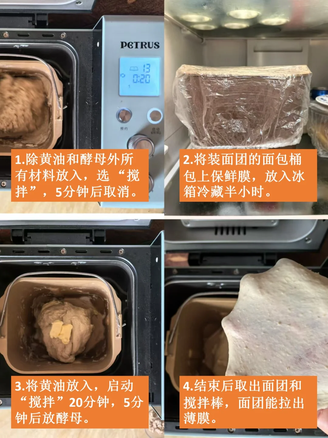 [二R]天热使用快速法,四种主流面包机的操作步骤都在附图里了。此次演示的是柏翠面包机,用的是分步操作法,如果偷懒,可以省略整形步骤。