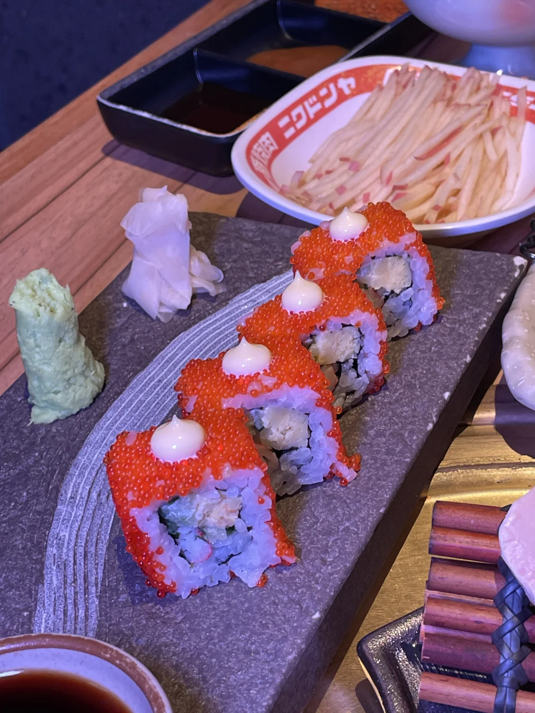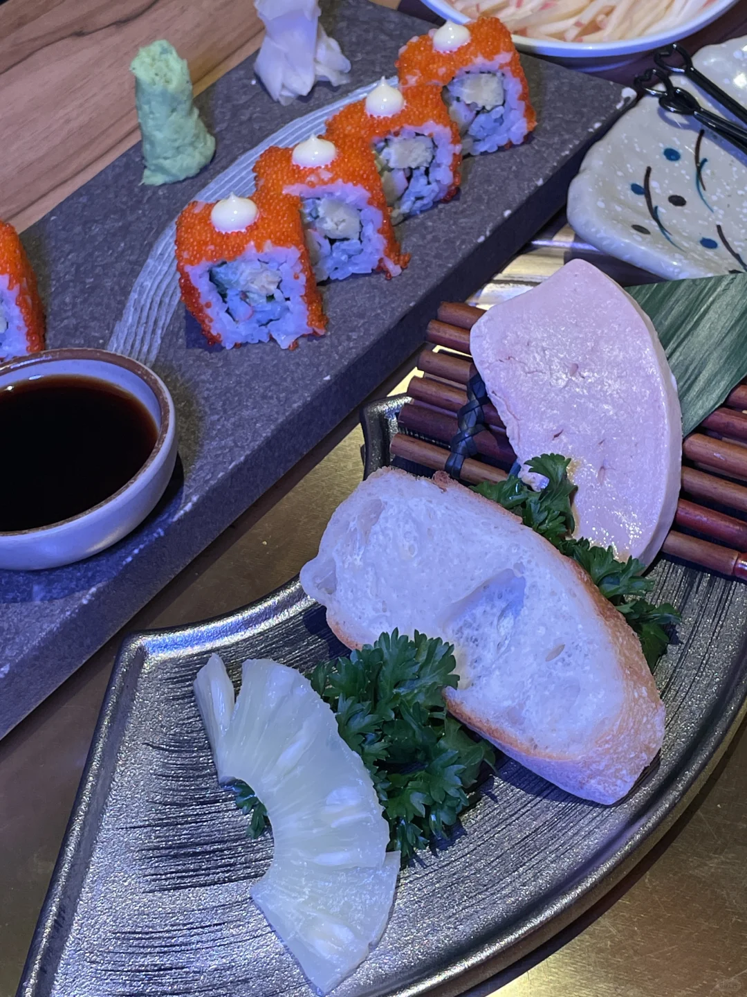 🍣现烤厚切鹅肝:鹅肝烤得恰到好处,外焦里嫩,入口即化,夹上菠萝🍍片和面包🥖片,酸酸甜甜的,一点儿都不腻,真的是味蕾的极致享受。