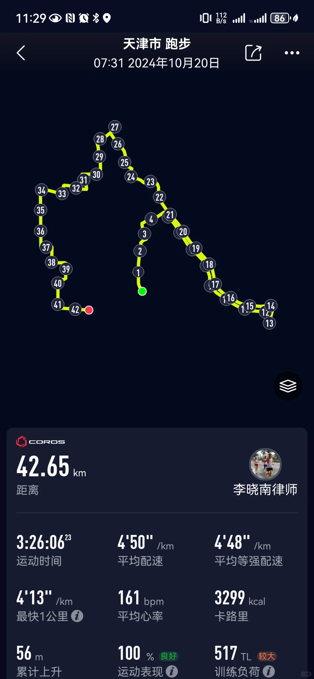 一年一场马拉松,天马感觉非常不错