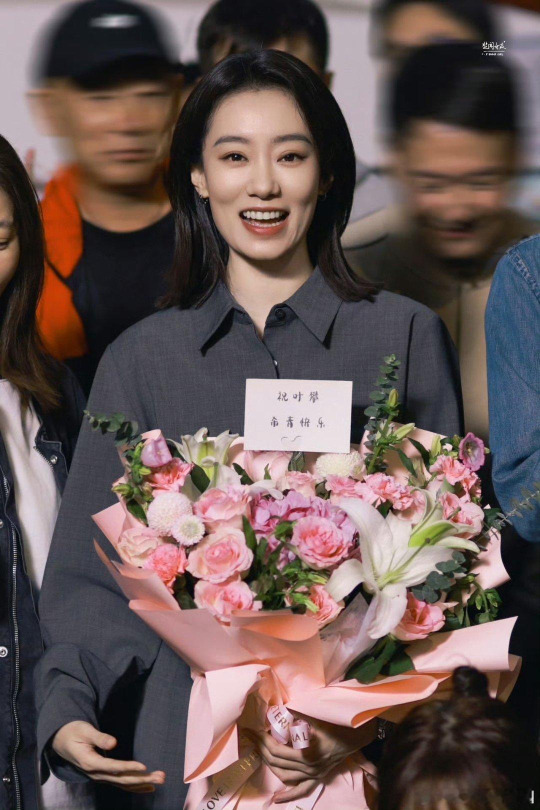 张天爱跟素人合影,胯真的好宽,大宅院似的