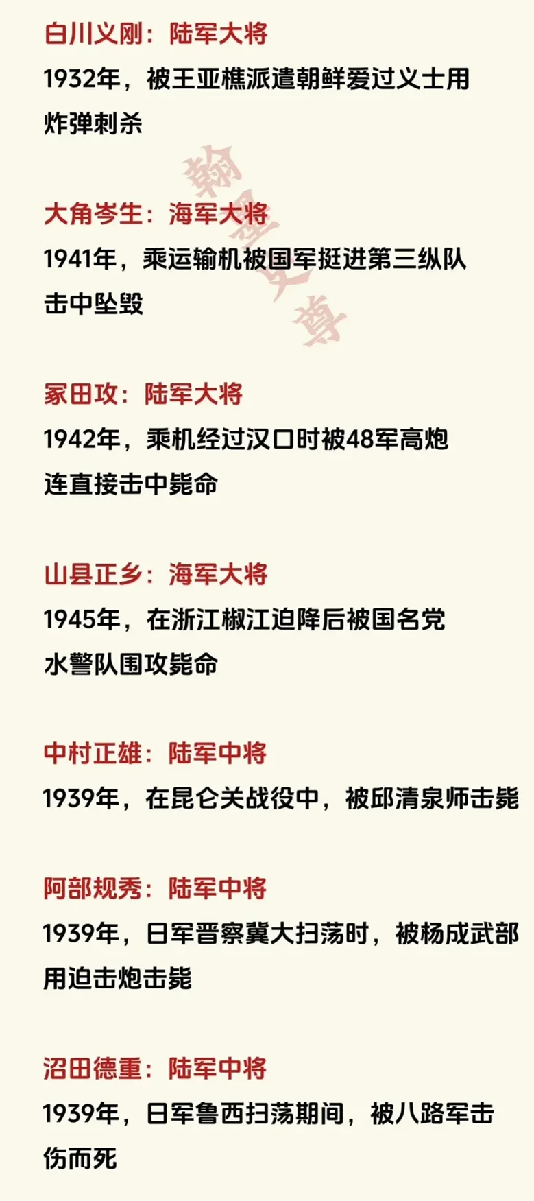 白川义刚,陆军大将,1932年,王亚樵派朝鲜义士,潜入庆祝会场,炸弹炸死。
