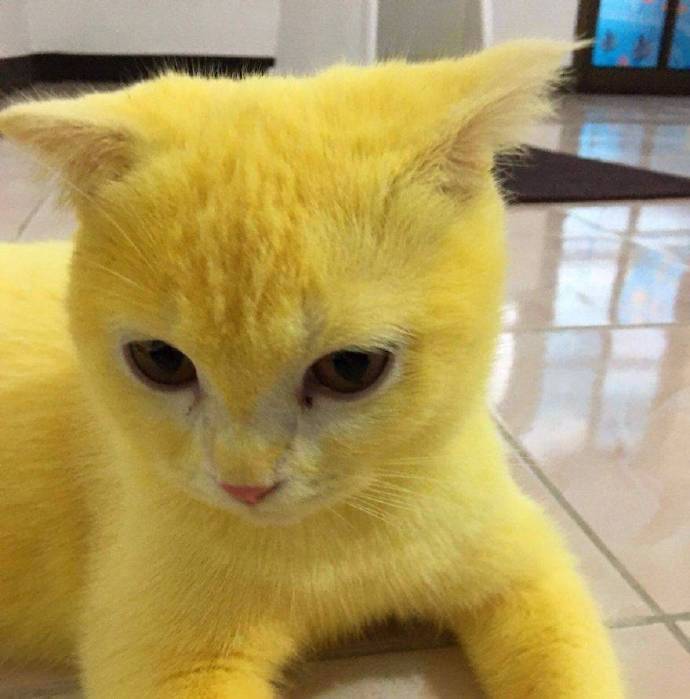为了防止真菌感染进一步扩散,她根据母亲的建议,用姜黄涂抹猫的全身,但是万万没想到,被姜黄染色的猫毛根本洗不掉,所以她现在有了一只皮卡丘。