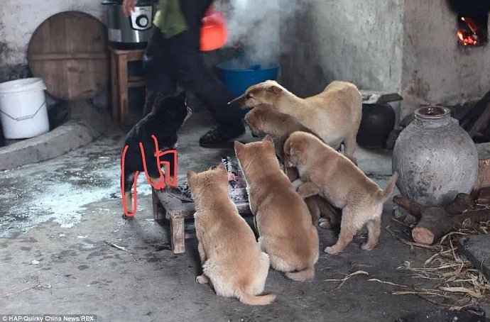 我以为这黑狗在给自己提鞋。