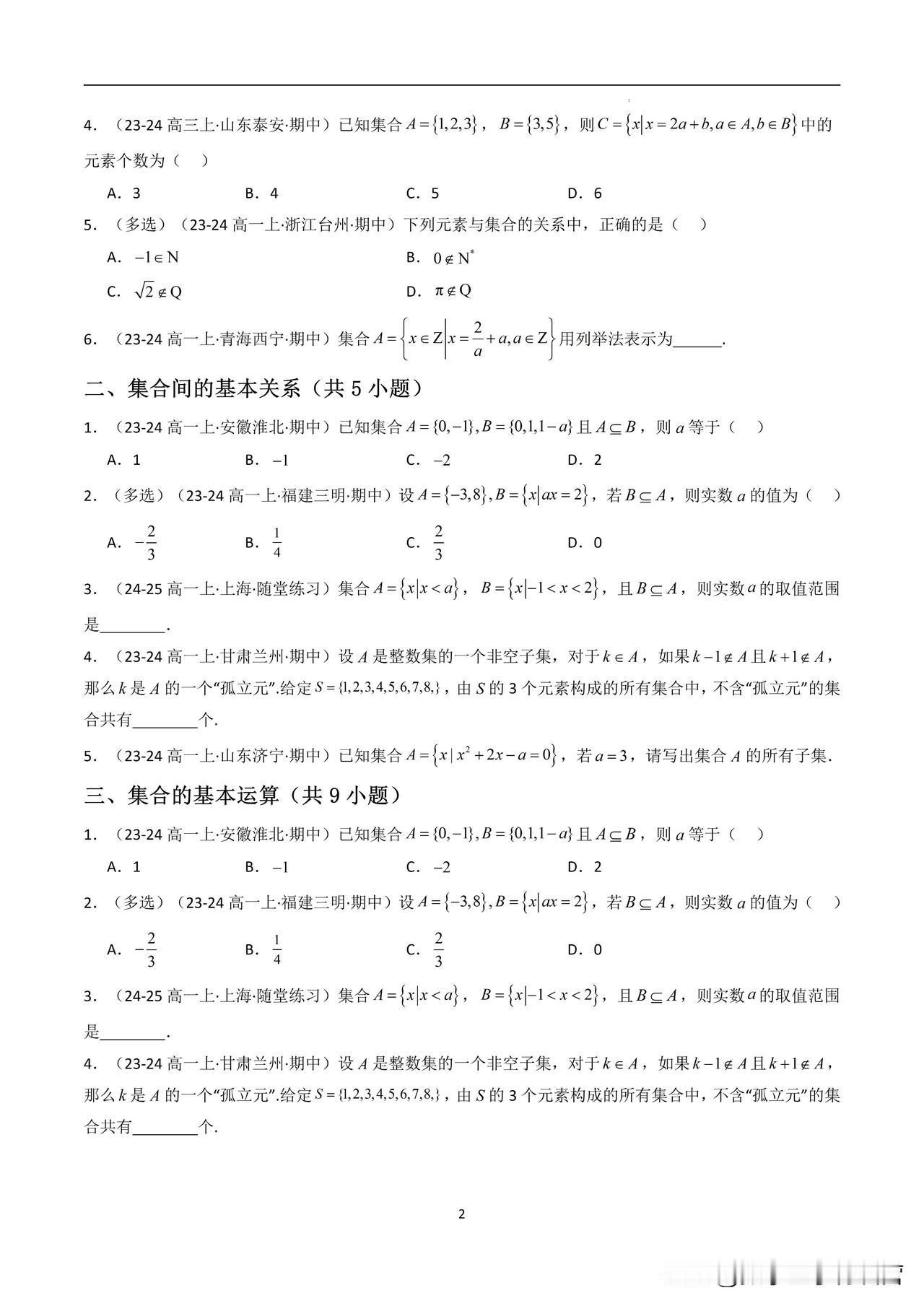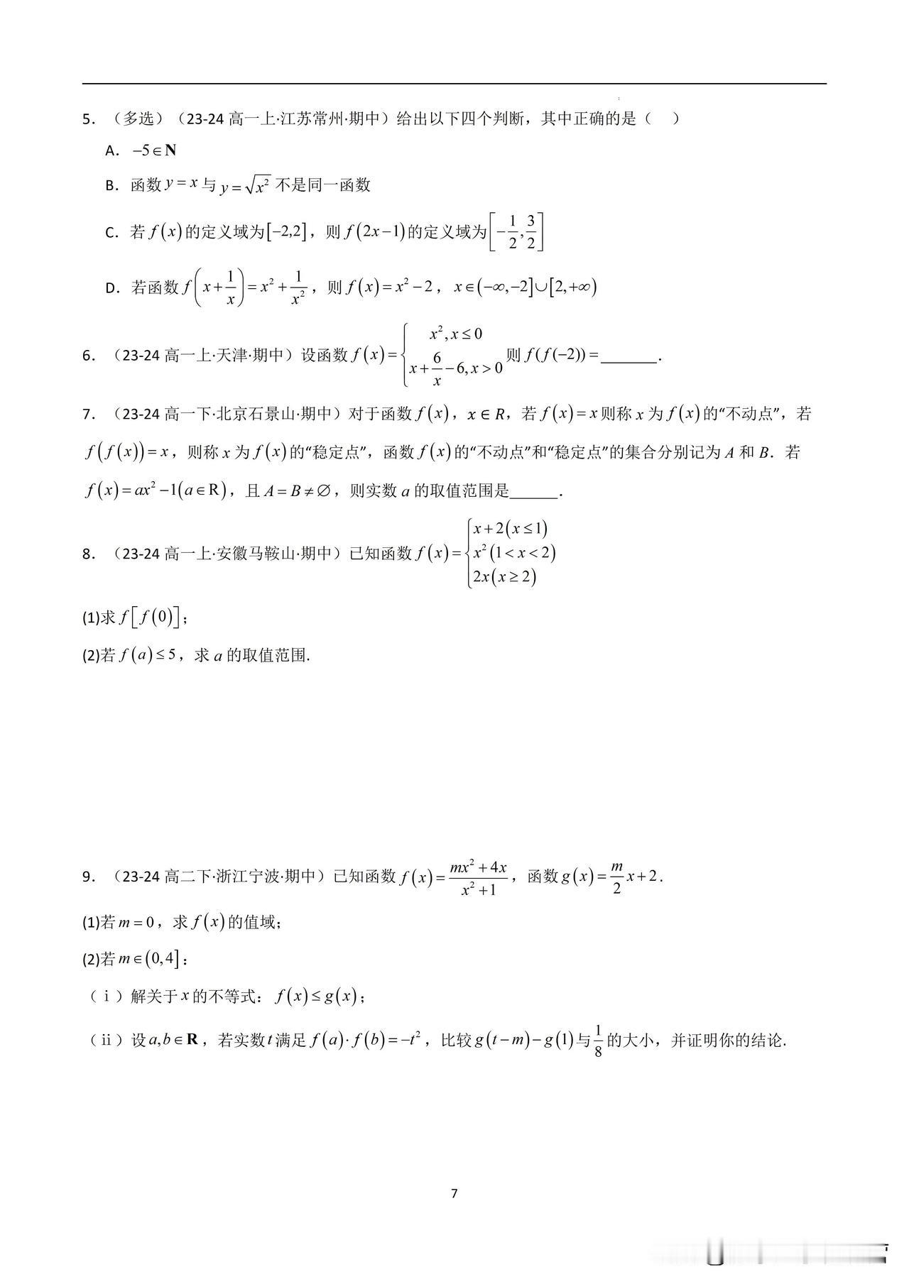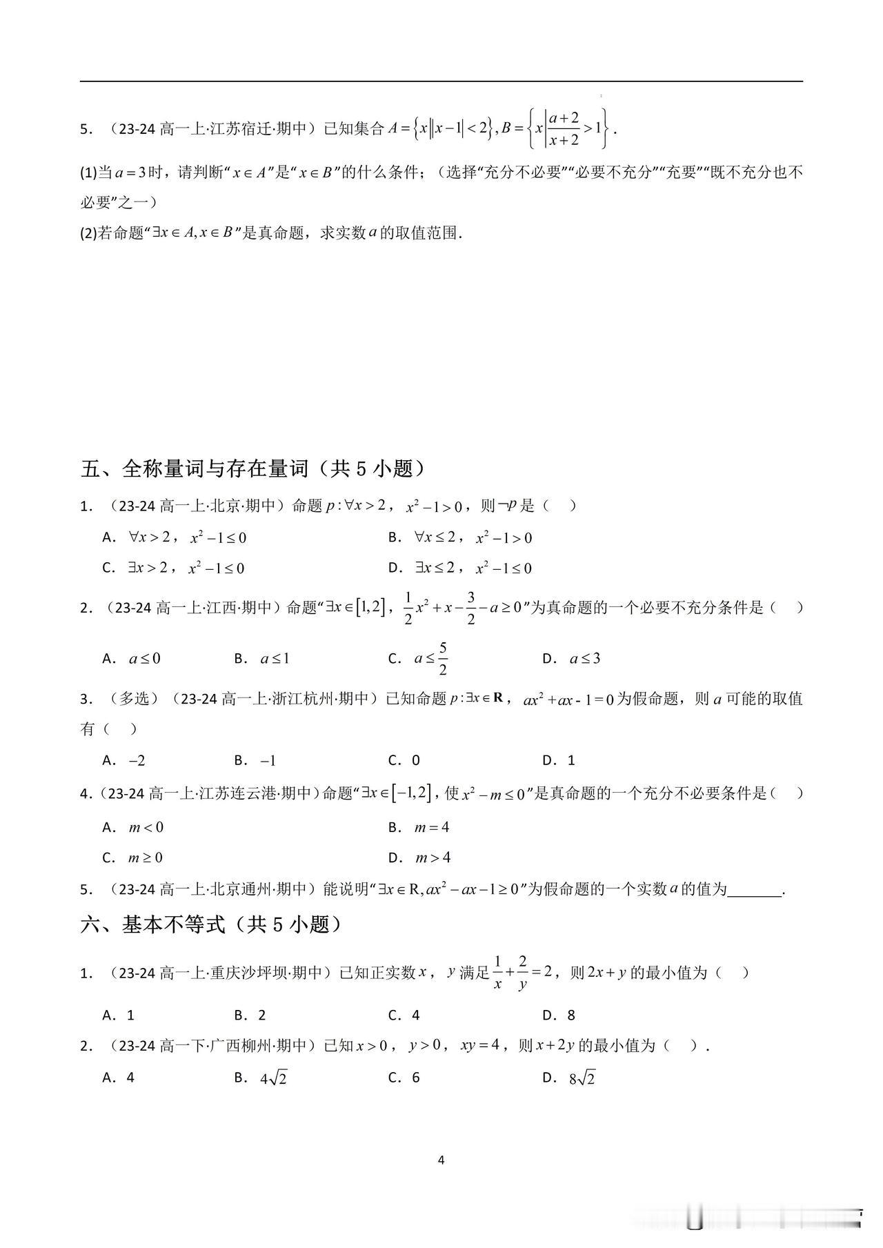 高一数学高一上学期期中真题精选(常考60题9类考点专练) 集合的概念 集合间的基本关系 集合的基本运算 充分性与必要性 全称量词与存在量词 基本不等式 二次函数与一元二次方程、不等式 函数的概念及其表示 函数的基本性质