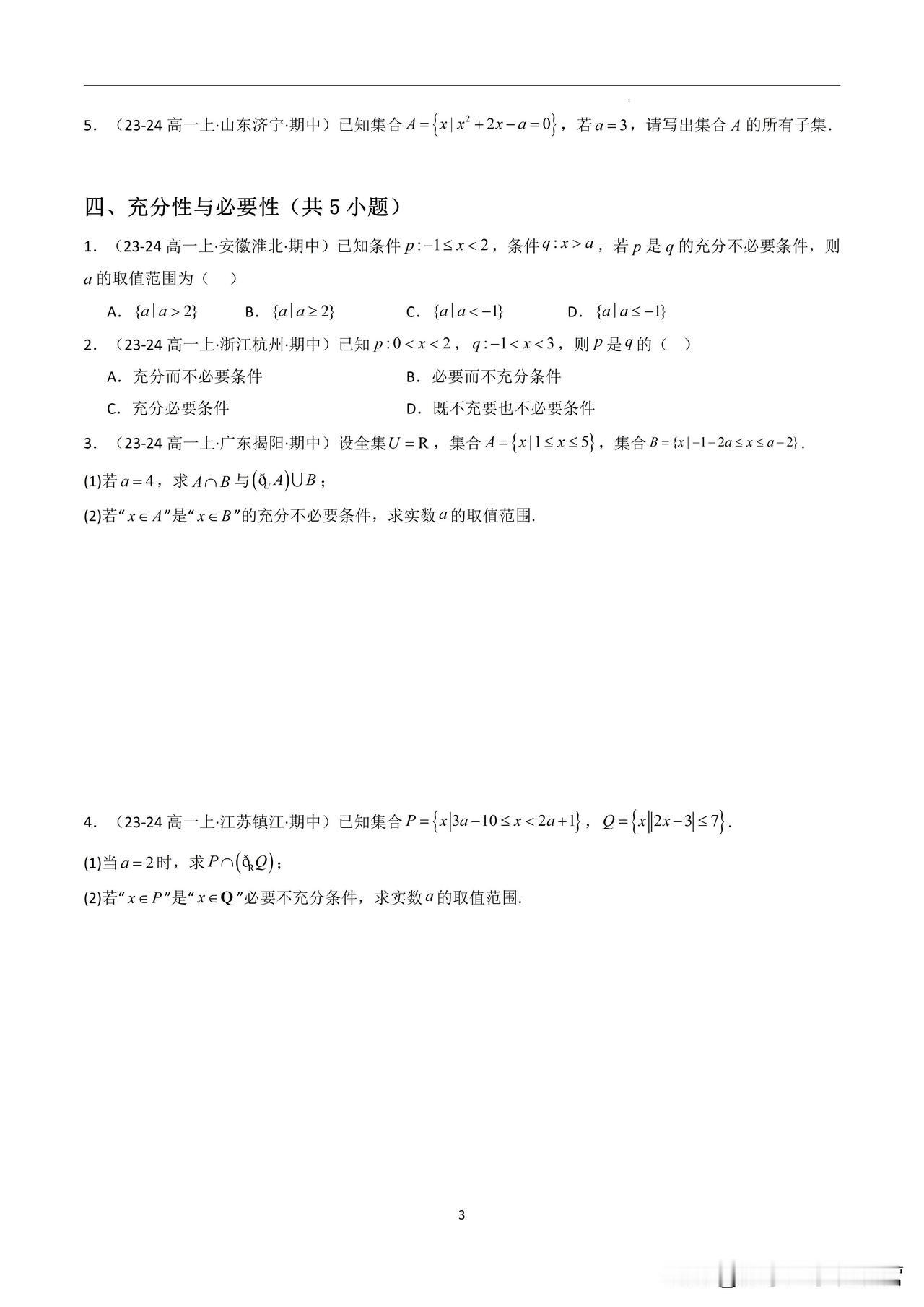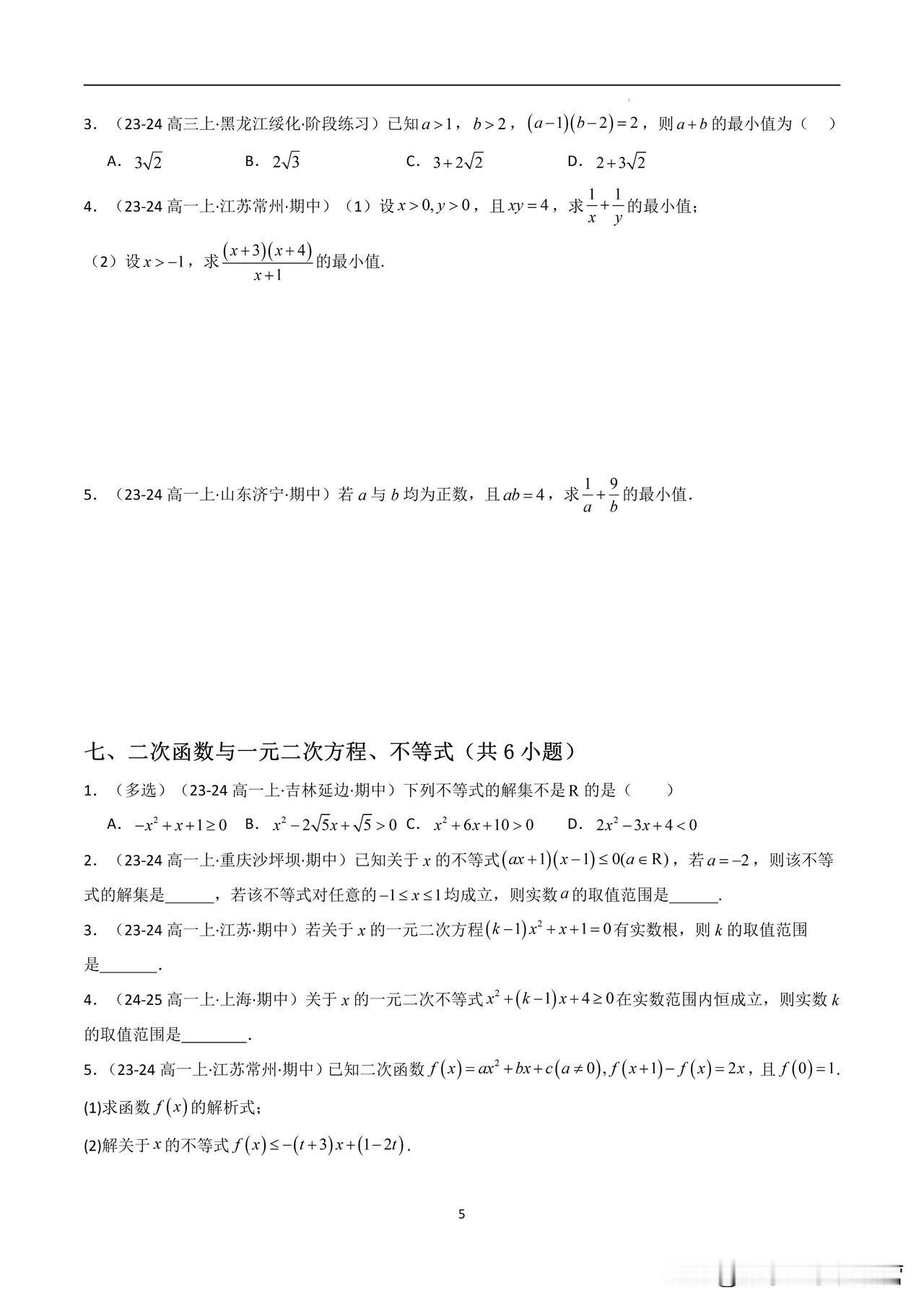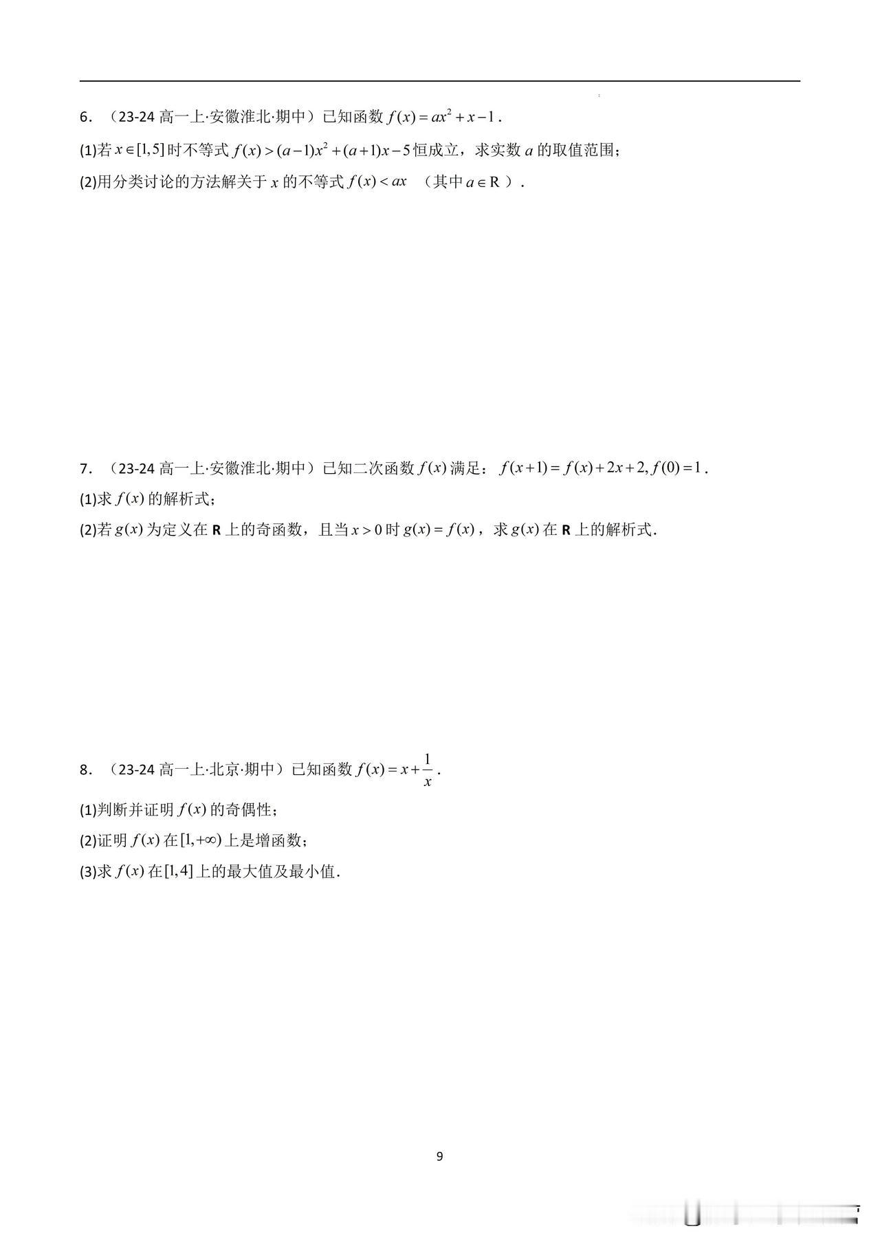 高一数学高一上学期期中真题精选(常考60题9类考点专练) 集合的概念 集合间的基本关系 集合的基本运算 充分性与必要性 全称量词与存在量词 基本不等式 二次函数与一元二次方程、不等式 函数的概念及其表示 函数的基本性质