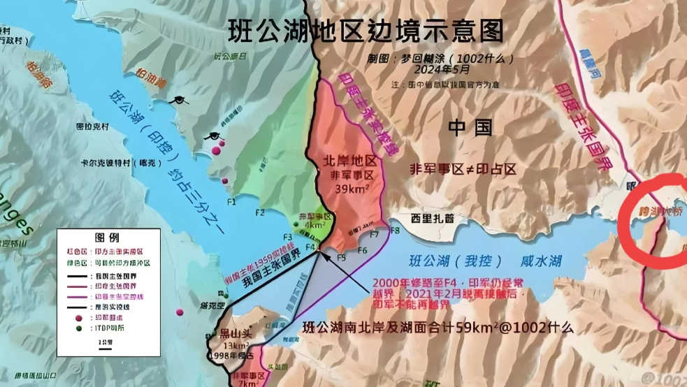 第一,苏杰生说话的可信度有多少?莫迪政府为了表示政绩,经常在国内民众关心的问题上说大话、空许愿、瞎保证,我们已是见怪不怪。能言善辩、说了不算、黑的说成白的、满口跑火车是印度人的一大特色。也搞不懂穷的钉铛响的印度人迷之自信,到了外人不可理解的地步。还问上海什么时候能发展到一城到有半城贫民窟的孟买水平。历届印度政府充分呈现了这个特色,莫迪政府也不例外。苏杰生的话听半句就好。加拉万河谷、班公湖等4个地点和巡逻线2021年4月经谈判已经脱离接触,现在在关键点位解放军不可能撤离。如我方在班公湖印度主张的分界线上,新建了班公湖大桥。这里在我方主张线也就是实控线后方26公里,根本没有让的可能(图2.3)。我们认为,在一些无关全局的点位,或有利于我迅速重新夺占的点位,做一些退让,以利于协议的达成,没有什么不好。我们要相信当面边防解放军,哪些是可以退让的,哪些是要坚决扼守的,他们心中有数。要不也用不着双方军队指挥官正式非正式地谈了几十次,才达成协议。