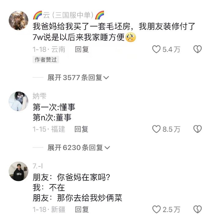 男的发消息:房开好了!女的懵了:你不是在开玩笑吧?男的:我认真的,别人都
