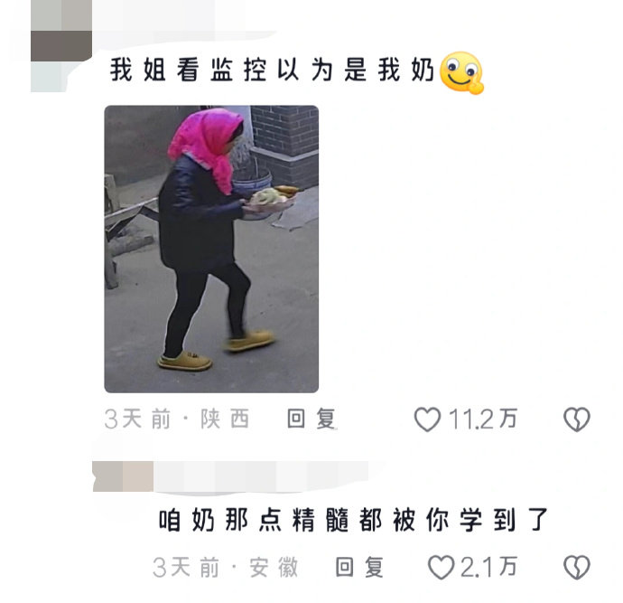 我姐看监控以为是我奶,实际上是我。