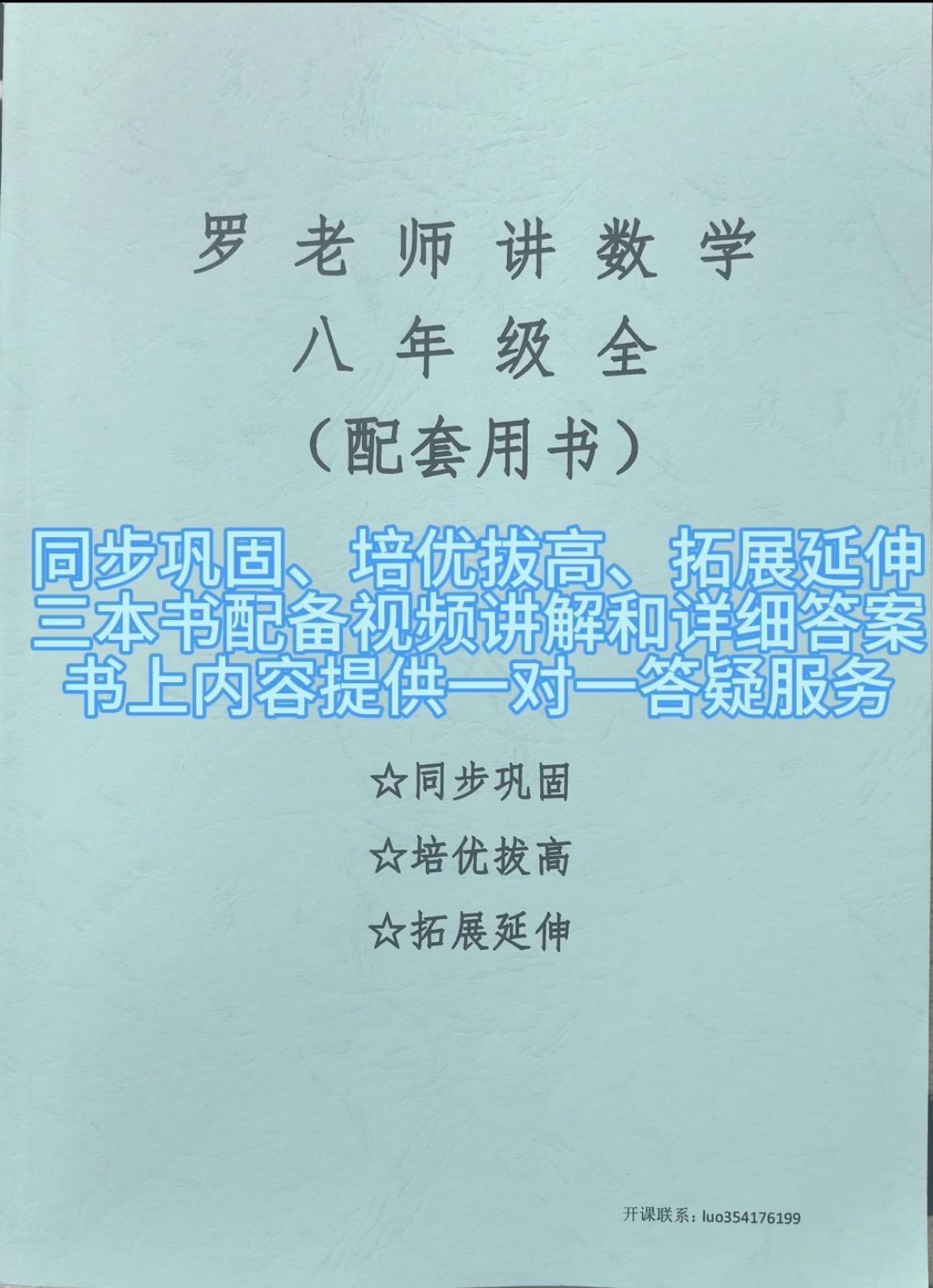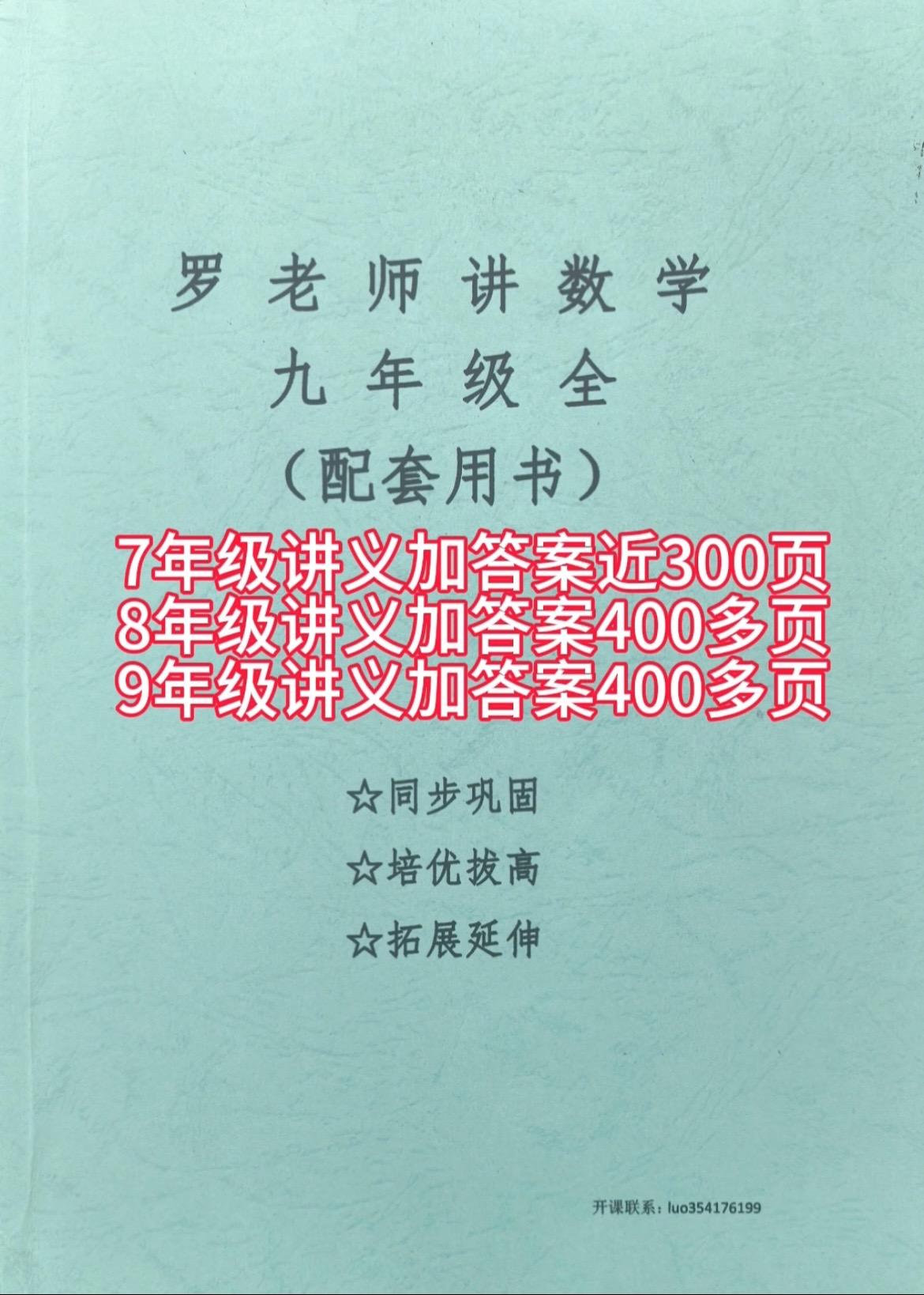 课程介绍: 1⃣️永久有效、随时学、反复学 2⃣️三本一起全国通用、不分版本 3⃣️手机平板电脑都能看 4⃣️同步巩固、培优拔高、拓展延伸 5⃣️全书配有视频讲解和详细答案 6⃣️书上内容提供1对1答疑服务 7⃣️课程后续免费更新 8⃣️七阶段300页,8阶段400页,9阶段400页,共1100多页包邮到家 9⃣️免费提供全国各地各类真题试卷 🔟任何问题咨询欢迎留言或者绿泡泡luo354176199联系我#初中数学 #家长必读