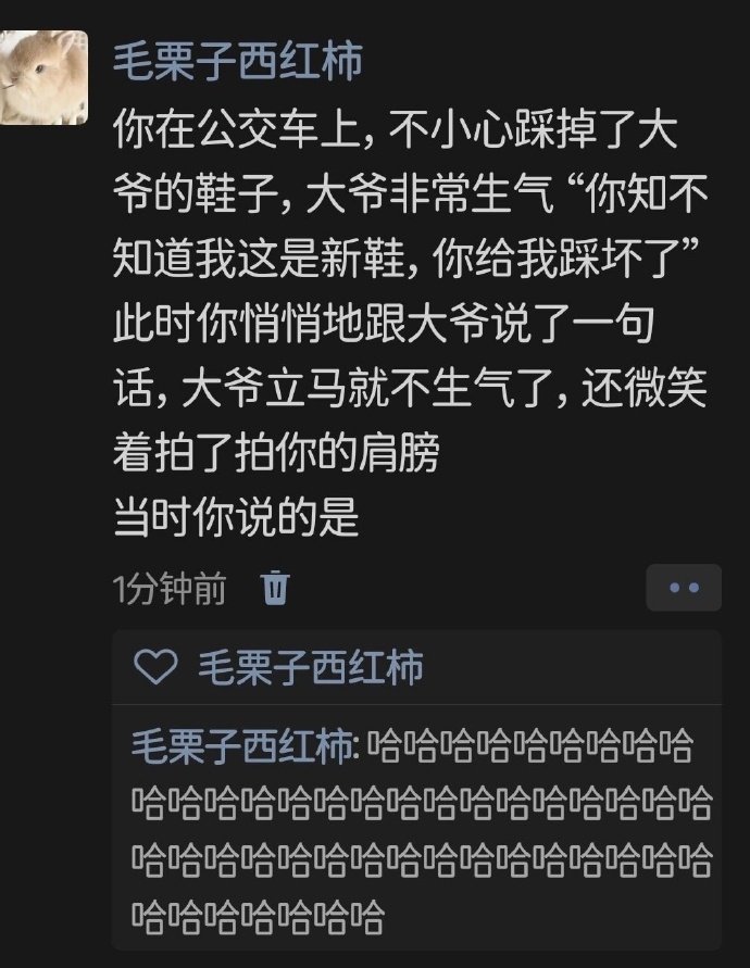 你在公交车上,不小心踩掉了大爷的鞋子,大爷非常生气“你知不知道我这是新鞋 你给我踩坏了此时你悄悄地跟大爷说了一句话,大爷立马就不生气了,还微笑着拍了拍你的肩膀当时你说的是