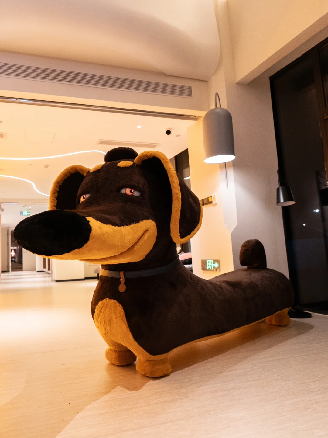 也是源于博主的一篇手工笔记被种草,非常想给我们的宠物主题酒店定一个。于是找了巨多的工厂去问,最终我的神仙设计师帮我在一个工厂搞定了。开始厂长说我给你做个头能转动的!我激动…后来又说,嗯,确实它转不动。然后终于做出来了吧,可给我丑坏了…咋看咋丑。于是厂长开始无比自信的跟我讲作品美与酷,经过长时间的坚定洗脑,我现在觉得我的腊肠非常帅,帅贱帅贱的。 你们觉得嘞?除了自助餐,咱们还有蔑视一切的三米长的大腊肠。每天承受着被围观的指指点点[失望R]投个票我看看,是帅还是丑?